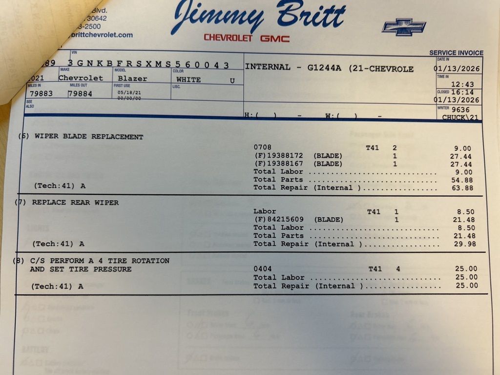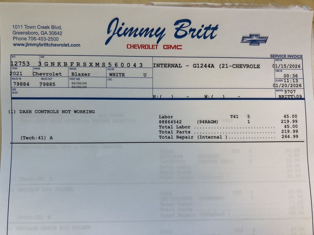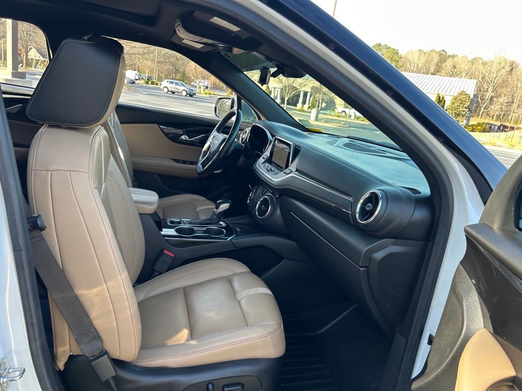 *The Jimmy Britt Premium Delivery Program lets you buy this vehicle right from the comfort of your couch. We frequently deliver vehicles nationwide, and even arrange test drives at home, if you are nearby. We will send you a personal video on any vehicle you are interested in. Call, email, or text us for details.* (Plus, you get our low-price guarantee and 2 free oil changes and tire rotations!) Ask for the vehicle history report! Priced below KBB Fair Purchase Price!iPhone/ Android Navigation compatible, Automatic Headlights, Rearview Camera, Bluetooth, Leather, Clean History Report!, Sunroof / Moonroof, Heated and Vented Front Seats, Heated Steering Wheel, Remote Starter System, Bose Premium Speaker System, Mutli-function Steering Wheel, Apple Carplay, ONSTAR, Push Button Start, Remote Keyless Entry, Andoid Auto, Premium Delivery Service Available, Blazer Premier, 4D Sport Utility, 3.6L V6 SIDI DOHC VVT, Iridescent Pearl Tricoat, Jet Black/Maple Sugar w/Perforated Leather-Appointed Seat Trim, 155 Amp Alternator, 3.49 Final Drive Axle Ratio, Adaptive Cruise Control, Apple CarPlay/Android Auto, Automatic temperature control, Bose Premium 8-Speaker Audio System Feature, Driver Confidence II Package, Emergency communication system: OnStar and Chevrolet connected services capable, Enhanced Automatic Emergency Braking, Exterior Parking Camera Rear, Front dual zone A/C, HD Surround Vision, Heated Driver & Front Passenger Seats, Heated front seats, Heated rear seats, Heated steering wheel, Keyless Entry Keypad (LPO), LED Headlamps, Low tire pressure warning, Navigation System, Perforated Leather-Appointed Seat Trim, Power driver seat, Power Liftgate, Power Panoramic Tilt-Sliding Sunroof, Power passenger seat, Preferred Equipment Group 0HD, Radio: Chevrolet Infotainment 3 Plus System, Rear anti-roll bar, Rear Camera Mirror, Rear Seat Info Sys w/DVD Player (LPO) (DISC), Rear window wiper, Remote keyless entry, Safety Alert Seat, SiriusXM w/360L, Steering wheel memory, Ventilated Driver & Front Passenger Seats, Ventilated front seats, Wheels: 21" Pearl Nickel Aluminum, Wireless Charging.Iridescent Pearl Tricoat 2021 Chevrolet Blazer Premier 3.6L V6 SIDI DOHC VVT FWD 20/27 City/Highway MPGAwards: * JD Power Automotive Performance, Execution and Layout (APEAL) Study The Jimmy Britt Automotive Family has received multiple Dealer of the Year awards in the state of Georgia. We've also been awarded the Customer Satisfaction Award through DealerRater! Price does not include State/County/Local Tax, Tag, GA Lemon Law or Registration fees. Dealer administrative fee is included in the price. We offer electronic tag and title as an option for an additional fee (this fee is based on what your state/county charge to participate as well as a fee to the company we select to process). A fee may be charged to customers wishing to have the vehicle delivered. Preowned Vehicles - All preowned inventory is “As Is” unless GM Certified or otherwise stated in writing. While we make every effort to ensure the data listed here is correct, there may be instances where some of the factory rebates, incentives, options, or vehicle features may be listed incorrectly as we get data from multiple data sources.