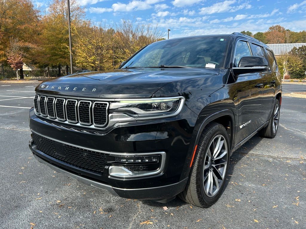 *The Jimmy Britt Premium Delivery Program lets you buy this vehicle right from the comfort of your couch. We frequently deliver vehicles nationwide, and even arrange test drives at home, if you are nearby. We will send you a personal video on any vehicle you are interested in. Call, email, or text us for details.* (Plus, you get our low-price guarantee and 2 free oil changes and tire rotations!) Ask for the vehicle history report! Priced below KBB Fair Purchase Price!iPhone/ Android Navigation compatible, Automatic Headlights, Rearview Camera, Bluetooth, Leather, Clean History Report!, 1 Owner, Sunroof / Moonroof, Running Boards, Heated and Vented Front Seats, Heated 2nd Row, Heated Steering Wheel, Remote Starter System, Mutli-function Steering Wheel, 4X4, Extended Warranty Available, Apple Carplay, 3rd Row Seats, Push Button Start, Remote Keyless Entry, Andoid Auto, Premium Delivery Service Available, Wagoneer Series III, 4D Sport Utility, 5.7L V8, 4WD, Diamond Black Crystal Pearlcoat, Global Black w/Leather Trimmed Bucket Seats, 19 Speaker McIntosh Audio System, 3 Panel Sunroof, 3.21 Rear Axle Ratio, Adjustable Roof Rail Crossbars, AM/FM radio: SiriusXM with 360L, Automatic temperature control, Cargo Cover, Exterior Parking Camera Rear, Front dual zone A/C, Heads-Up Display, Heated front seats, Heated rear seats, Heated steering wheel, Leather Trimmed Bucket Seats, Low tire pressure warning, Navigation System, Power Deployable Running Boards, Power driver seat, Power Liftgate, Power passenger seat, Premium Group I (DISC), Quick Order Package 22N, Radio: Uconnect 5 Nav w/10.1" Display, Rain sensing wipers, Rear air conditioning, Rear anti-roll bar, Rear dual zone A/C, Reclining 3rd row seat, Remote keyless entry, Ventilated front seats, Wheels: 22" x 9.0" Premium 3 Aluminum (DISC).Diamond Black Crystal Pearlcoat 2022 Jeep Wagoneer Series III 5.7L V8 4WDThe Jimmy Britt Automotive Family has received multiple Dealer of the Year awards in the state of Georgia. We've also been awarded the Customer Satisfaction Award through DealerRater! Price does not include State/County/Local Tax, Tag, GA Lemon Law or Registration fees. Dealer administrative fee is included in the price. We offer electronic tag and title as an option for an additional fee (this fee is based on what your state/county charge to participate as well as a fee to the company we select to process). A fee may be charged to customers wishing to have the vehicle delivered. Preowned Vehicles - All preowned inventory is “As Is” unless GM Certified or otherwise stated in writing. While we make every effort to ensure the data listed here is correct, there may be instances where some of the factory rebates, incentives, options, or vehicle features may be listed incorrectly as we get data from multiple data sources.