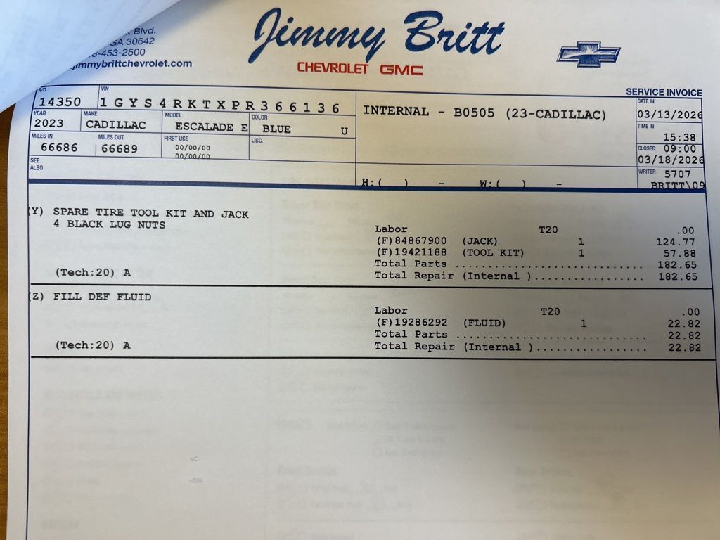 *The Jimmy Britt Premium Delivery Program lets you buy this vehicle right from the comfort of your couch. We frequently deliver vehicles nationwide, and even arrange test drives at home, if you are nearby. We will send you a personal video on any vehicle you are interested in. Call, email, or text us for details.* (Plus, you get our low-price guarantee and 2 free oil changes and tire rotations!) Ask for the vehicle history report!iPhone/ Android Navigation compatible, Automatic Headlights, Rearview Camera, Bluetooth, Leather, 1 Owner, Sunroof / Moonroof, Rear DVD Entertainment System, Running Boards, Heated and Vented Front Seats, Heated 2nd Row, Heated Steering Wheel, Remote Starter System, Mutli-function Steering Wheel, 4X4, Extended Warranty Available, Apple Carplay, ONSTAR, 3rd Row Seats, Push Button Start, Remote Keyless Entry, Andoid Auto, Premium Delivery Service Available, Escalade ESV Sport Platinum, 4D Sport Utility, 3.0L V8 Diesel Turbocharged OHV 16V LEV3-ULEV125 420hp, AWD, Dark Moon Blue Metallic, Dark Auburn w/Jet Black Accents w/Full Semi-Aniline Leather Seats w/Mondrian Quilt, 16.9" Diagonal OLED Infotainment Screen, 3.23 Axle Ratio, Adaptive Cruise Control, Air Conditioning, Air Ride Adaptive Suspension, AKG Studio Reference 36-Speaker Audio System, Apple CarPlay/Android Auto, Automatic Seat Belt Tightening, Automatic temperature control, Body-Color Door Handles, Cooled Console w/Covered Storage, Door Lock & Latch Shields, Electronic Limited-Slip Differential, Emergency communication system: OnStar and Cadillac connected services capable, Enhanced Automatic Emergency Braking, Enhanced Automatic Parking Assist, Exterior Parking Camera Rear, Floor Console w/Covered Storage, Front Bucket Seats, Front dual zone A/C, Full Semi-Aniline Leather Seat Trim, Glass Breakage Sensor, Gloss Black Escalade Nameplate (LPO), HD Radio, Heads-Up Display, Heated & Ventilated Driver & Front Passenger Seats, Heated Driver & Front Passenger Seats, Heated front seats, Heated rear seats, Heated steering wheel, Hitch Guidance w/Hitch View, Integrated Trailer Brake Controller, Low tire pressure warning, Monochrome Cadillac Emblems (LPO), Navigation System, Night Vision, Onyx Package (LPO), Platinum Interior Trim, Power driver seat, Power Liftgate, Power Lumbar Massage Driver Seat, Power Lumbar Massage Front Passenger Seat, Power moonroof, Power Panoramic Tilt-Sliding Sunroof, Power passenger seat, Power-Retractable Assist Steps, Preferred Equipment Group 1SH, Radio: AM/FM w/Navigation, Rain sensing wipers, Rear air conditioning, Rear anti-roll bar, Rear Camera Mirror, Rear Camera Mirror Washer, Rear Cross Traffic Alert, Rear Seat Entertainment System, Reconfigurable Full-Color Head-Up Display, Remote keyless entry, Reverse Automatic Braking, Running Board Assist Steps, SiriusXM w/360L, Smart Trailer Integration Indicator, Super Cruise, Teen Driver, Telescoping steering wheel, Theft-Deterrent Alarm System, Touring Package, Trailer Side Blind Zone Alert, Vehicle Inclination Sensor, Vehicle Interior Movement Sensor, Ventilated front seats, Wheels: 22" 12-Spoke Gloss Black Alloy (LPO), Wireless Apple CarPlay/Wireless Android Auto.Dark Moon Blue Metallic 2023 Cadillac Escalade ESV Sport Platinum 3.0L V8 Diesel Turbocharged OHV 16V LEV3-ULEV125 420hp AWD 20/26 City/Highway MPGThe Jimmy Britt Automotive Family has received multiple Dealer of the Year awards in the state of Georgia. We've also been awarded the Customer Satisfaction Award through DealerRater! Price does not include State/County/Local Tax, Tag, GA Lemon Law or Registration fees. Dealer administrative fee is included in the price. We offer electronic tag and title as an option for an additional fee (this fee is based on what your state/county charge to participate as well as a fee to the company we select to process). A fee may be charged to customers wishing to have the vehicle delivered. Preowned Vehicles - All preowned inventory is “As Is” unless GM Certified or othe