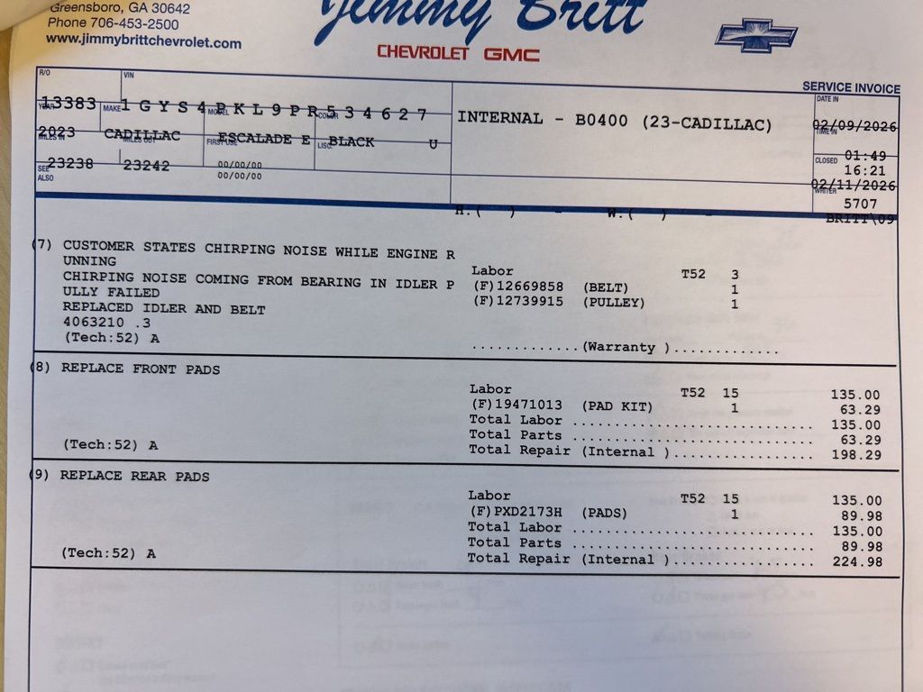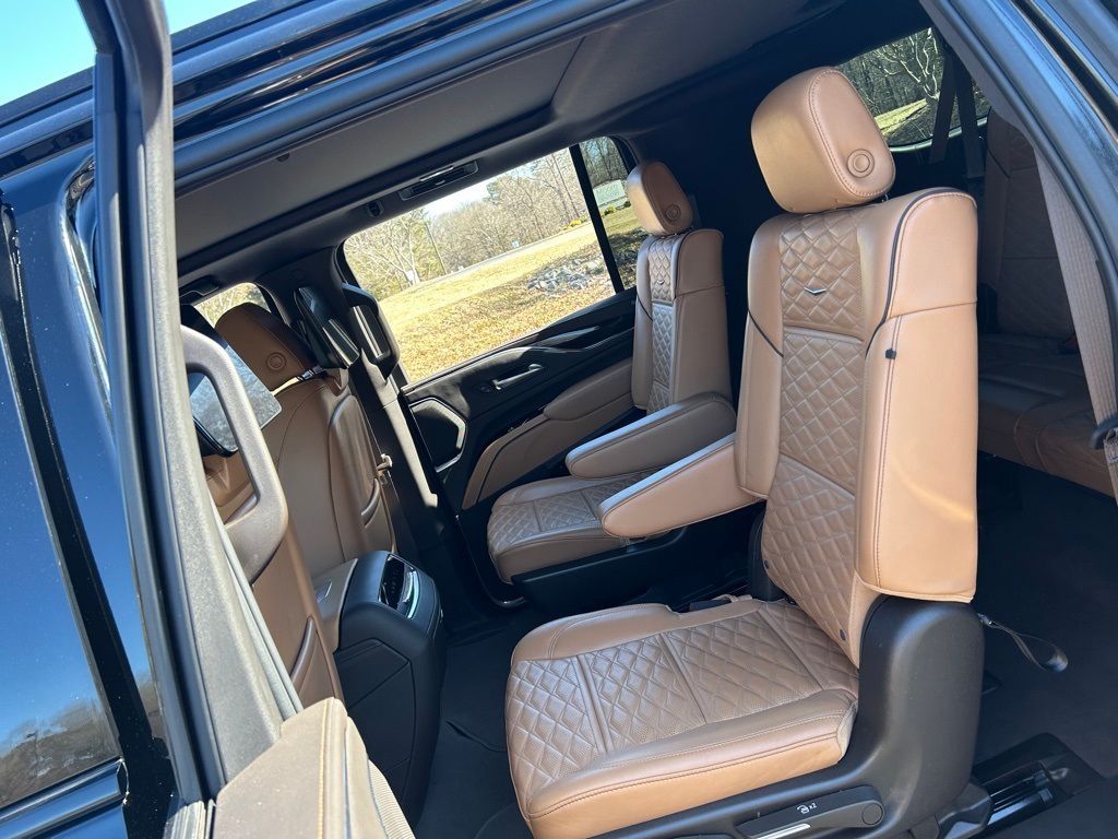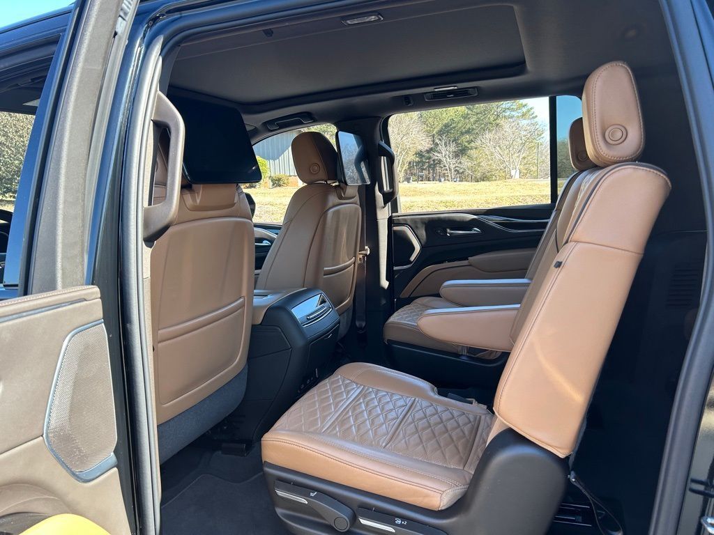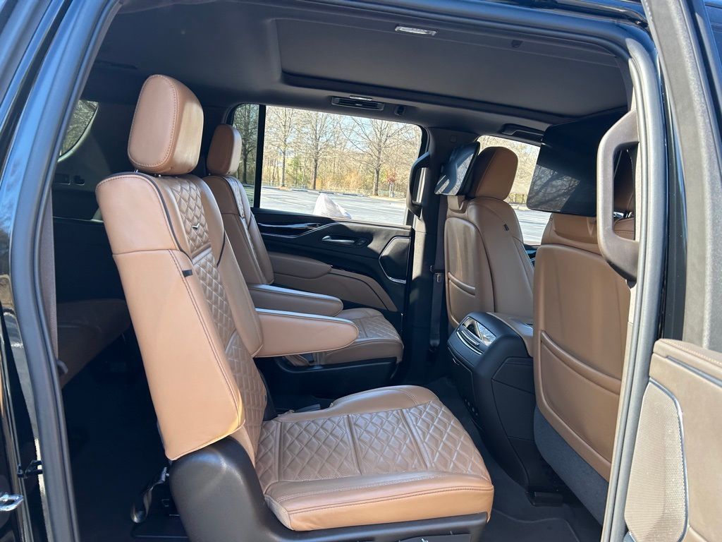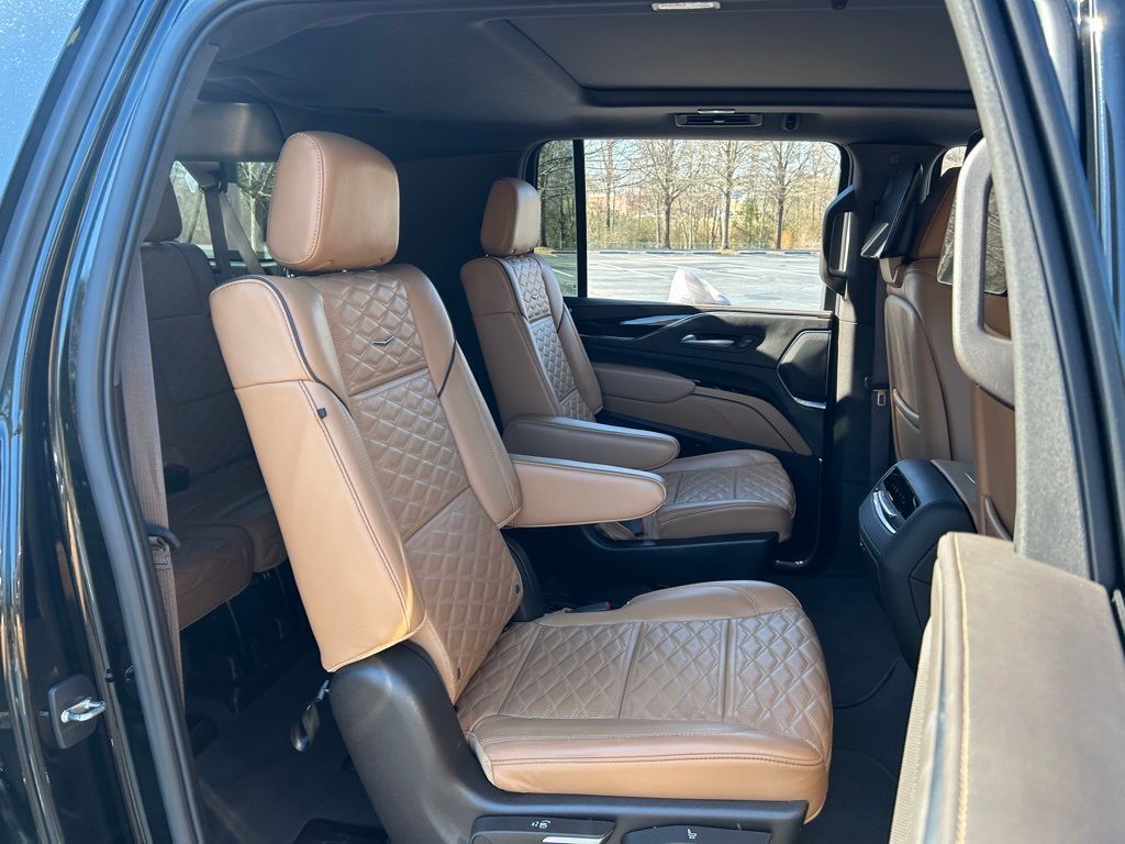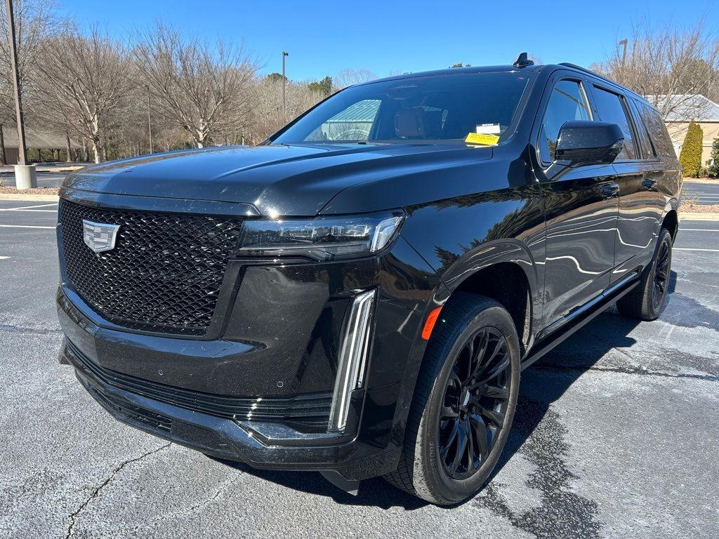 *The Jimmy Britt Premium Delivery Program lets you buy this vehicle right from the comfort of your couch. We frequently deliver vehicles nationwide, and even arrange test drives at home, if you are nearby. We will send you a personal video on any vehicle you are interested in. Call, email, or text us for details.* (Plus, you get our low-price guarantee and 2 free oil changes and tire rotations!) Ask for the vehicle history report! Odometer is 27515 miles below market average! Priced below KBB Fair Purchase Price!iPhone/ Android Navigation compatible, Automatic Headlights, Rearview Camera, Bluetooth, Leather, 1 Owner, Sunroof / Moonroof, Rear DVD Entertainment System, Towing Package / Hitch, Running Boards, Heated and Vented Front Seats, Heated 2nd Row, Heated Steering Wheel, Remote Starter System, Mutli-function Steering Wheel, 4X4, Includes the Remainder of the Factory Warranty, Extended Warranty Available, Apple Carplay, ONSTAR, 3rd Row Seats, Push Button Start, Remote Keyless Entry, Andoid Auto, Premium Delivery Service Available, Escalade ESV Sport, 4D Sport Utility, 6.2L V8, AWD, Black Raven, Brandy w/Very Dark Atmosphere Accents w/Full Leather Seats w/Faceted Quilting, 16.9" Diagonal OLED Infotainment Screen, 3.23 Axle Ratio, Adaptive Cruise Control, Air Ride Adaptive Suspension, AKG Studio 19-Speaker Audio System, Apple CarPlay/Android Auto, Automatic Seat Belt Tightening, Automatic temperature control, Body-Color Door Handles, Door Lock & Latch Shields, Electronic Limited-Slip Differential, Emergency communication system: OnStar and Cadillac connected services capable, Enhanced Automatic Emergency Braking, Enhanced Automatic Parking Assist, Exterior Parking Camera Rear, Front Bucket Seats, Front dual zone A/C, Glass Breakage Sensor, Gloss Black Escalade Nameplate (LPO), HD Radio, Heads-Up Display, Heated & Ventilated Driver & Front Passenger Seats, Heated Driver & Front Passenger Seats, Heated front seats, Heated rear seats, Heated steering wheel, Hitch Guidance w/Hitch View, Illuminating Front & Rear Sill Plates, Integrated Trailer Brake Controller, Leather Seating Surfaces w/Precision Perf Inserts, Low tire pressure warning, Monochrome Cadillac Emblems (LPO), Navigation System, Onyx Package (LPO), Power driver seat, Power Liftgate, Power moonroof, Power Panoramic Tilt-Sliding Sunroof, Power passenger seat, Power windows, Power-Retractable Assist Steps, Preferred Equipment Group 1SC, Puddle Lamps w/Cadillac Crest (LPO), Radio: AM/FM w/Navigation, Rain sensing wipers, Rear air conditioning, Rear anti-roll bar, Rear Camera Mirror, Rear Camera Mirror Washer, Rear Cross Traffic Alert, Rear Seat Entertainment System, Reconfigurable Full-Color Head-Up Display, Remote keyless entry, Reverse Automatic Braking, Running Board Assist Steps, SiriusXM w/360L, Smart Trailer Integration Indicator, Soft Closing Front & Rear Doors, Super Cruise, Teen Driver, Theft-Deterrent Alarm System, Touring Package, Trailer Side Blind Zone Alert, Vehicle Inclination Sensor, Vehicle Interior Movement Sensor, Ventilated front seats, Wheels: 22" 12-Spoke Gloss Black Alloy (LPO), Wireless Apple CarPlay/Wireless Android Auto.Black Raven 2023 Cadillac Escalade ESV Sport 6.2L V8 AWDThe Jimmy Britt Automotive Family has received multiple Dealer of the Year awards in the state of Georgia. We've also been awarded the Customer Satisfaction Award through DealerRater! Price does not include State/County/Local Tax, Tag, GA Lemon Law or Registration fees. Dealer administrative fee is included in the price. We offer electronic tag and title as an option for an additional fee (this fee is based on what your state/county charge to participate as well as a fee to the company we select to process). A fee may be charged to customers wishing to have the vehicle delivered. Preowned Vehicles - All preowned inventory is “As Is” unless GM Certified or otherwise stated in writing. While we make every effort to ensure the data listed here is correct, there may be