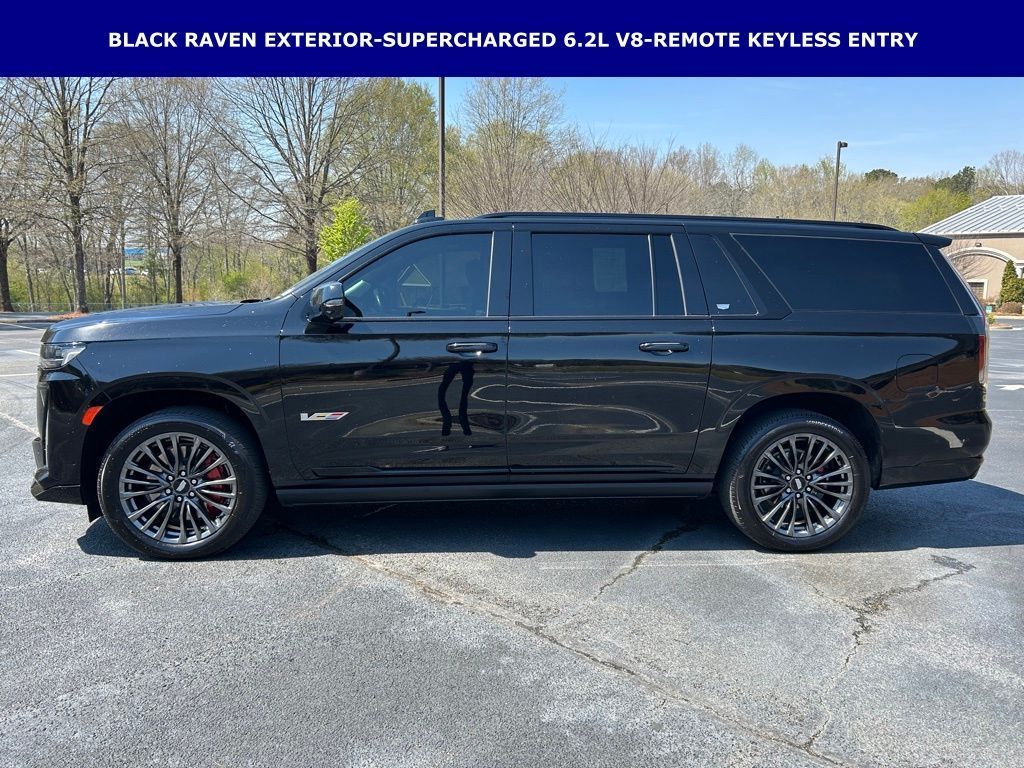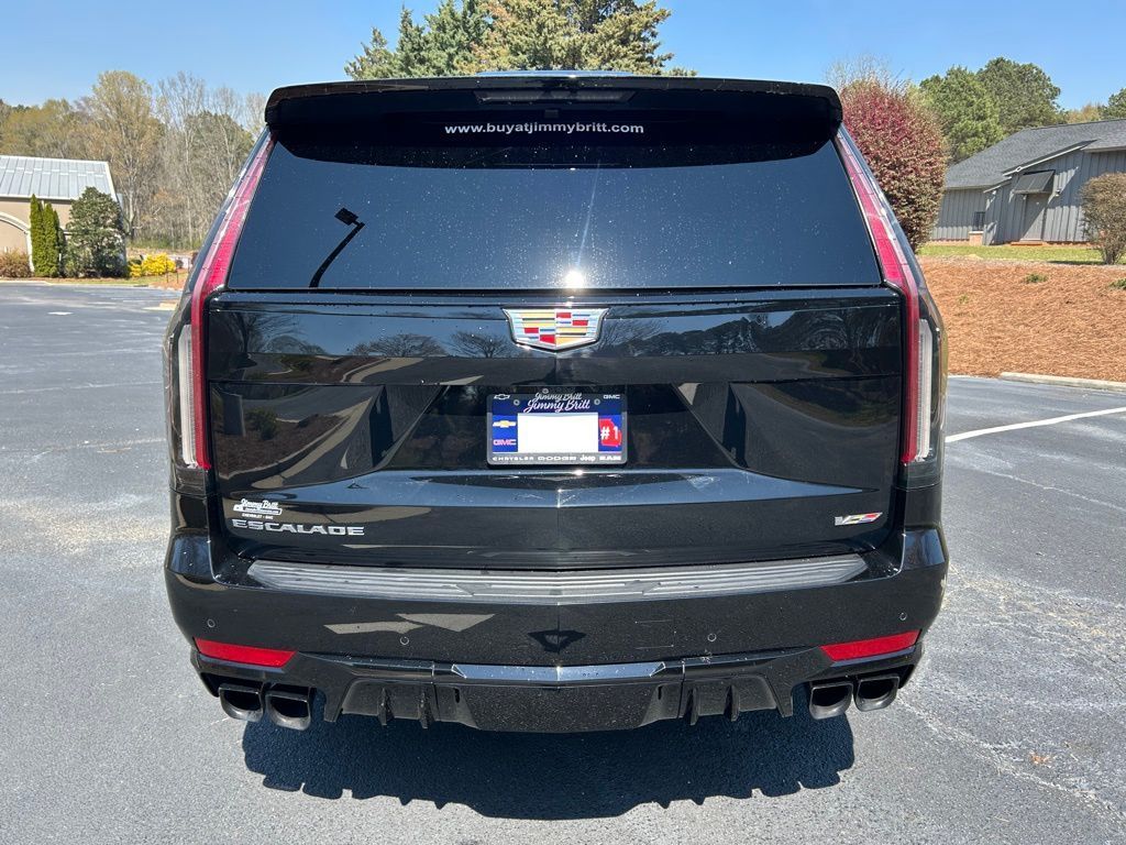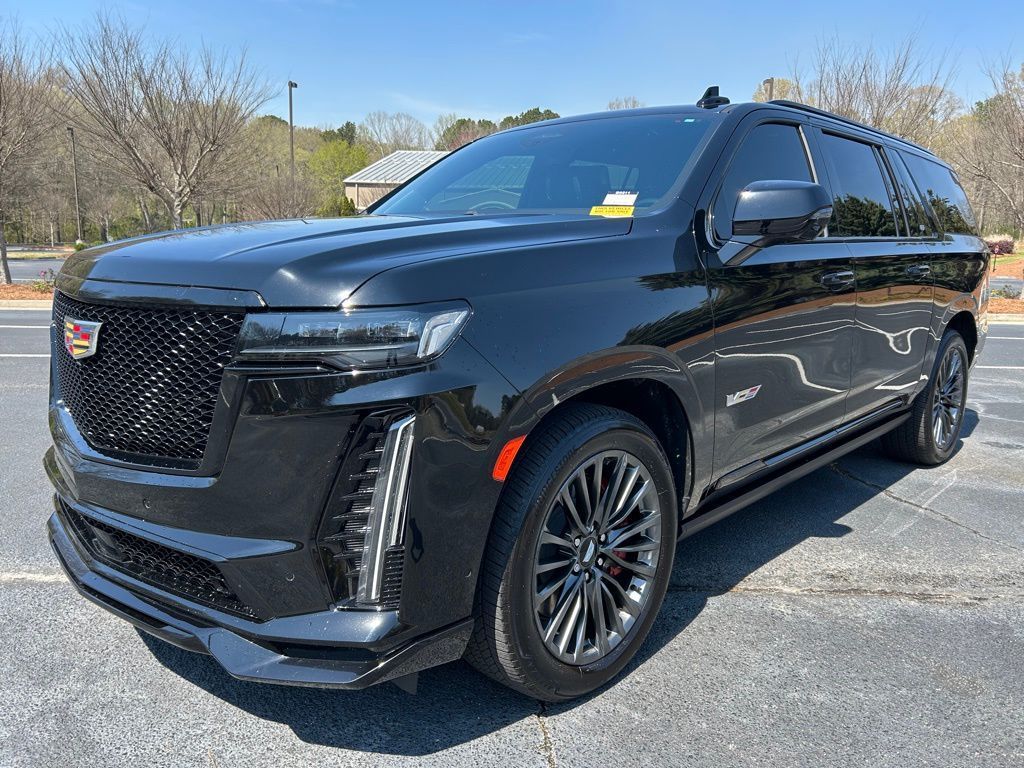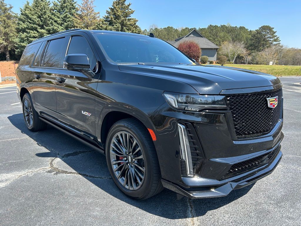 *The Jimmy Britt Premium Delivery Program lets you buy this vehicle right from the comfort of your couch. We frequently deliver vehicles nationwide, and even arrange test drives at home, if you are nearby. We will send you a personal video on any vehicle you are interested in. Call, email, or text us for details.* (Plus, you get our low-price guarantee and 2 free oil changes and tire rotations!) Ask for the vehicle history report! Priced below KBB Fair Purchase Price!iPhone/ Android Navigation compatible, Automatic Headlights, Rearview Camera, Bluetooth, Leather, 1 Owner, Sunroof / Moonroof, Rear DVD Entertainment System, Running Boards, Heated and Vented Front Seats, Heated 2nd Row, Heated Steering Wheel, Remote Starter System, Mutli-function Steering Wheel, 4X4, Extended Warranty Available, Apple Carplay, ONSTAR, 3rd Row Seats, Push Button Start, Remote Keyless Entry, Andoid Auto, Premium Delivery Service Available, Escalade ESV V-Series, 4D Sport Utility, 6.2L V8 Supercharged, AWD, Black Raven, Jet Black w/Full Semi-Aniline Leather Seats w/Mondrian Quilt, 16.9" Diagonal OLED Infotainment Screen, 3.23 Axle Ratio, A/V remote, Active Noise Cancellation, Adaptive Cruise Control, Air Ride Adaptive Suspension, AKG Studio Reference 36-Speaker Audio System, Apple CarPlay/Android Auto, Automatic Seat Belt Tightening, Automatic temperature control, Body-Color Door Handles, Door Lock & Latch Shields, Electronic Limited-Slip Differential, Emergency communication system: OnStar and Cadillac connected services capable, Enhanced Automatic Emergency Braking, Enhanced Automatic Parking Assist, Exterior Parking Camera Rear, Floor Console w/Covered Storage, Front Bucket Seats, Front dual zone A/C, Full Semi-Aniline Leather Seat Trim, Glass Breakage Sensor, HD Radio, Headphones, Heads-Up Display, Heated & Ventilated Driver & Front Passenger Seats, Heated Driver & Front Passenger Seats, Heated front seats, Heated rear seats, Heated steering wheel, Hitch Guidance w/Hitch View, Integrated Trailer Brake Controller, Low tire pressure warning, Navigation System, Platinum Interior Trim, Power driver seat, Power Liftgate, Power Lumbar Massage Driver Seat, Power Lumbar Massage Front Passenger Seat, Power moonroof, Power Panoramic Tilt-Sliding Sunroof, Power passenger seat, Power-Retractable Assist Steps, Preferred Equipment Group 1SD, Radio: AM/FM w/Navigation, Rain sensing wipers, Rear air conditioning, Rear anti-roll bar, Rear Camera Mirror, Rear Camera Mirror Washer, Rear Cross Traffic Alert, Rear Seat Entertainment System, Reconfigurable Full-Color Head-Up Display, Remote keyless entry, Reverse Automatic Braking, SiriusXM w/360L, Smart Trailer Integration Indicator, Super Cruise, Teen Driver, Theft-Deterrent Alarm System, Touring Package, Trailer Side Blind Zone Alert, Vehicle Inclination Sensor, Vehicle Interior Movement Sensor, Ventilated front seats, Wheels: 22" 18-Spoke Alloy, Wireless Apple CarPlay/Wireless Android Auto.Black Raven 2023 Cadillac Escalade ESV V-Series 6.2L V8 Supercharged AWDThe Jimmy Britt Automotive Family has received multiple Dealer of the Year awards in the state of Georgia. We've also been awarded the Customer Satisfaction Award through DealerRater! Price does not include State/County/Local Tax, Tag, GA Lemon Law or Registration fees. Dealer administrative fee is included in the price. We offer electronic tag and title as an option for an additional fee (this fee is based on what your state/county charge to participate as well as a fee to the company we select to process). A fee may be charged to customers wishing to have the vehicle delivered. Preowned Vehicles - All preowned inventory is “As Is” unless GM Certified or otherwise stated in writing. While we make every effort to ensure the data listed here is correct, there may be instances where some of the factory rebates, incentives, options, or vehicle features may be listed incorrectly as we get data from multiple data sources.