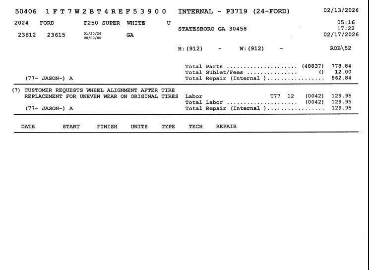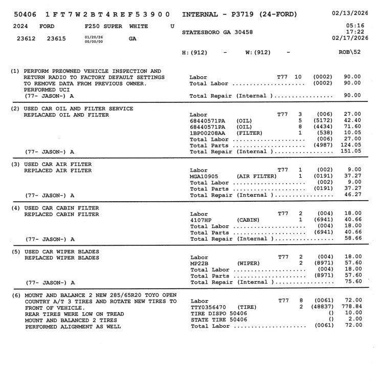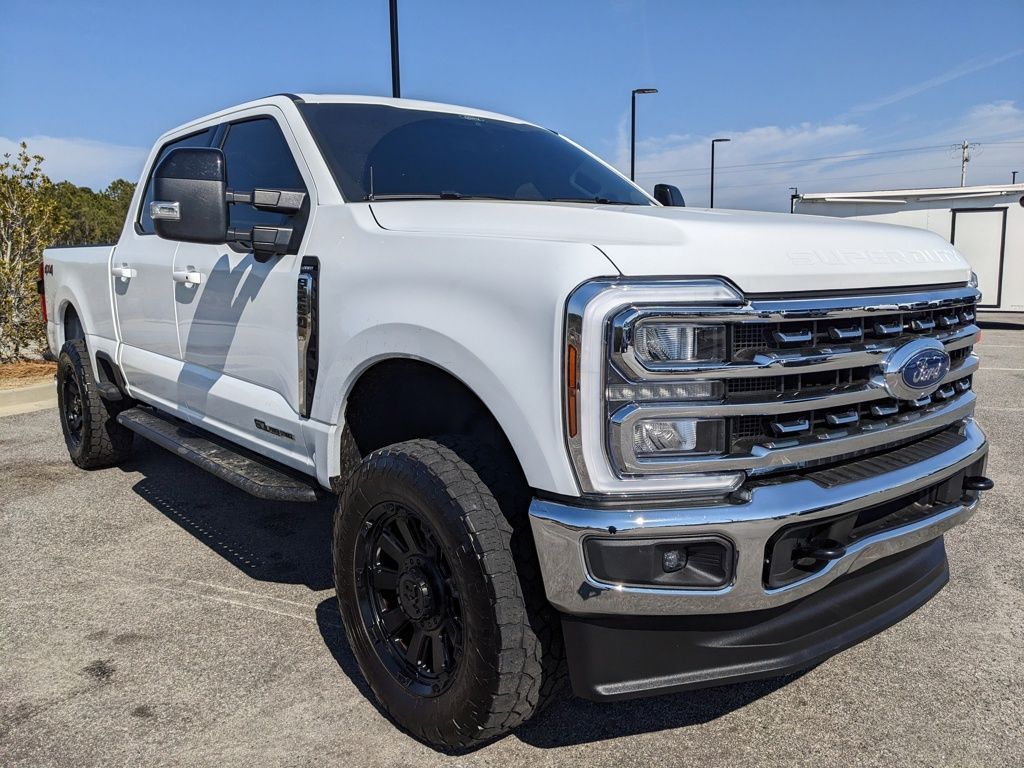 *The Jimmy Britt Premium Delivery Program lets you buy this vehicle right from the comfort of your couch. We frequently deliver vehicles nationwide, and even arrange test drives at home, if you are nearby. We will send you a personal video on any preowned vehicle you are interested in. Call, email, or text us for details.* (Plus, you get our low-price guarantee and 2 free oil changes!) Priced below KBB Fair Purchase Price! Odometer is 9069 miles below market average!One Owner, Clean Autocheck / No Accidents, Remaining Factory Warranty, Extended Warranty Available, Bluetooth / Hands-free, Apple Car Play / Android Auto Compatible, Surround-View Camera w/ Guidelines, Back-Up Camera w/ Guidelines, Cruise Control, Heated Seats, Leather Seats, Multi-Zone Climate Control, Navigation, Portable Audio Connection, Premium Audio, Premium Wheels, Multi-function Steering Wheel, Trailer Hitch, 4x4/4WD, Remote Start, Apple Carplay, Android Auto, Cooled Seats, Oversized Tires, *Premium Delivery Service Available*, iphone / Droid Navigation Compatible, LEVELED, 35" TOYO A/T TIRES, 20" BLACK XD WHEELS, F-250 SuperDuty Lariat, 4D Crew Cab, Power Stroke 6.7L V8 DI 32V OHV Turbodiesel, 10-Speed Automatic, 4WD, Oxford White, Black Onyx w/Front Leather-Trimmed 40/Console/40 Seats, 3.31 Axle Ratio, Automatic temperature control, BLIS w/Cross-Traffic Alert, Emergency communication system: SYNC 4 911 Assist, Exterior Parking Camera Rear, F-250 >10K GVWR Package, Front dual zone A/C, Heated front seats, Heated rear seats, Heated steering wheel, Low tire pressure warning, Navigation System, Navigation system: Connected Navigation (includes complimentary 1-year trial), Order Code 608A, Power driver seat, Power passenger seat, Radio: B&O Sound System by Bang & Olufsen, Rain sensing wipers, Remote keyless entry, SiriusXM Radio w/360L, SYNC 4 w/Enhanced Voice Recognition, Ventilated front seats, Wireless Charging Pad.Oxford White 2024 Ford F-250SD Lariat Power Stroke 6.7L V8 DI 32V OHV Turbodiesel 4WDThe Jimmy Britt Automotive Family has received multiple Dealer of the Year awards in the state of Georgia. We've also been awarded the Customer Satisfaction Award through DealerRater! Price does not include State/County/Local Tax, Tag, GA Lemon Law or Registration fees. Dealer administrative fee is included in the price. We offer electronic tag and title as an option for an additional fee (this fee is based on what your state/county charge to participate as well as a fee to the company we select to process). A fee may be charged to customers wishing to have the vehicle delivered. New Vehicles - Must finance with Chrysler Digital to receive all rebates and incentives. Not all will qualify for Chrysler financing. See Dealer for details. Preowned Vehicles - All preowned inventory is “As Is” unless Chrysler Certified or otherwise stated in writing. While we make every effort to ensure the data listed here is correct, there may be instances where some of the factory rebates, incentives, options, or vehicle features may be listed incorrectly as we get data from multiple data sources.