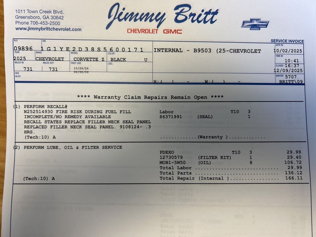 *The Jimmy Britt Premium Delivery Program lets you buy this vehicle right from the comfort of your couch. We frequently deliver vehicles nationwide, and even arrange test drives at home, if you are nearby. We will send you a personal video on any vehicle you are interested in. Call, email, or text us for details.* (Plus, you get our low-price guarantee and 2 free oil changes and tire rotations!) Ask for the vehicle history report! Odometer is 1974 miles below market average!iPhone/ Android Navigation compatible, Automatic Headlights, Rearview Camera, Bluetooth, Leather, 1 Owner, Sunroof / Moonroof, Heated and Vented Front Seats, Heated Steering Wheel, Remote Starter System, Bose Premium Speaker System, Mutli-function Steering Wheel, Includes the Remainder of the Factory Warranty, Extended Warranty Available, Apple Carplay, ONSTAR, Push Button Start, Remote Keyless Entry, Andoid Auto, Premium Delivery Service Available, TINT, Corvette Z06 2LZ, 2D Coupe, 5.5L V8, Black, Adrenaline Red w/Mulan Lthr Seating Surfaces w/Perforated Inserts, 8-Way Power Driver Seat Adjuster, 8-Way Power Passenger Seat Adjuster, AM/FM radio: SiriusXM, Automatic Leveling System Headlamp Control, Automatic temperature control, Bose Performance Series Sound System w/14 Speakers, Driver Power Bolster Seat Adjuster, Edge Red-Painted Calipers, Electrical Theft Deterrent System, Emergency communication system: OnStar and Chevrolet connected services capable, Exterior Parking Camera Rear, Four wheel independent suspension, Front dual zone A/C, Front Lift Adjustable Height w/Memory, GT1 Bucket Seats, HD Front & Rear Vision Cameras, Heads-Up Display, Heated & Vented Driver & Passenger Seats, Heated front seats, Heated Steering Wheel, Low tire pressure warning, Memory Driver & Passenger Convenience Package, Mulan Lthr Seating Surfaces w/Perforated Inserts, Navigation System, Passenger Power Bolster Seat Adjuster, Performance Data & Video Recorder, Power Driver Lumbar Control Seat Adjuster, Power driver seat, Power Passenger Lumbar Control Seat Adjuster, Power passenger seat, Power-Adjustable Outside Heated Mirrors, Preferred Equipment Group 2LZ, Rear Cross Traffic Alert, Remote keyless entry, Side Blind Zone Alert, Universal Home Remote, Vehicle Inclination Theft Deterrent Sensor, Vehicle Interior Movement Theft Deterrent Sensor, Ventilated front seats, Wheels: 20" x 10" Fr/21" x 13" Rr Black, Wireless Charging for Devices.Black 2025 Chevrolet Corvette Z06 2LZ 5.5L V8 RWDAwards: * Car and Driver 10 BestCar and Driver, January 2017. The Jimmy Britt Automotive Family has received multiple Dealer of the Year awards in the state of Georgia. We've also been awarded the Customer Satisfaction Award through DealerRater! Price does not include State/County/Local Tax, Tag, GA Lemon Law or Registration fees. Dealer administrative fee is included in the price. We offer electronic tag and title as an option for an additional fee (this fee is based on what your state/county charge to participate as well as a fee to the company we select to process). A fee may be charged to customers wishing to have the vehicle delivered. Preowned Vehicles - All preowned inventory is “As Is” unless GM Certified or otherwise stated in writing. While we make every effort to ensure the data listed here is correct, there may be instances where some of the factory rebates, incentives, options, or vehicle features may be listed incorrectly as we get data from multiple data sources.