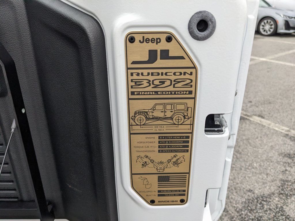 Price includes rebates. Not all customers may qualify for all rebates. $2000 - 2025 National Bonus Cash . Exp. 03/31/2026 Savings applied to everyone. Includes $1000 finance assistance. Not available with special financing, lease and select other offers. Must take new retail delivery by 04/30/2026. Savings applied to everyone. $1000.00 Retail Trade Incentive for current owners trading in 2011 or newer motor vehicle with less than 150,000 miles. Trade must run and drive with valid registration. Not available with special financing, lease and some other offers. Must take new retail delivery by 04/30/2026. Ask Dealer representative for details on qualification. *The Jimmy Britt Premium Delivery Program lets you buy this vehicle right from the comfort of your couch. We frequently deliver vehicles nationwide, and even arrange test drives at home, if you are nearby. We will send you a personal video on any vehicle you are interested in. Call, email, or text us for details.* (Plus, you get our low-price guarantee and two free oil changes!) Factory MSRP: $105,985 Priced below KBB Fair Purchase Price! Bluetooth / Hands-free, Apple Car Play / Android Auto Compatible, Back-Up Camera w/ Guidelines, Cruise Control, Heated Seats, Leather Seats, Multi-Zone Climate Control, Navigation, Portable Audio Connection, Power Locks, Power Windows, Premium Audio, Premium Wheels, Security System, Multi-function Steering Wheel, Sunroof / Moonroof, 4x4/4WD, Remote Start, Apple Carplay, Android Auto, *Premium Delivery Service Available*, iphone / Droid Navigation Compatible, Wrangler Rubicon 392, 4D Sport Utility, SRT HEMI 6.4L V8 MDS, 4WD, Bright White Clearcoat, Black w/392 Final Edition Nappa Leather Seat, 392 Final Edition Nappa Leather Seat, 392 Suspension, 4.56 Rear Axle Ratio, AM/FM radio: SiriusXM with 360L, Apple CarPlay/Android Auto, Automatic temperature control, Convertible HardTop, Emergency communication system: Jeep Connect, Front dual zone A/C, Glass rear window, Heated front seats, Heated steering wheel, Integrated roll-over protection, Low tire pressure warning, Navigation System, ParkView Rear Back-Up Camera, Power driver seat, Power passenger seat, Power Top Quarter Window Storage Bag, Quick Order Package 27J 392 Final Edition, Radio: Uconnect 5 Nav w/12.3" Display, Rear anti-roll bar, Rear Window Defroster, Rear window wiper, Rear Window Wiper/Washer, Remote keyless entry, Removable Rear Quarter Windows, Sky 1-Touch Power Top, Wheels: 17" x 8" Bronze Beadlock Capable. Bright White Clearcoat 2025 Jeep Wrangler Rubicon 392 SRT HEMI 6.4L V8 MDS 4WDThe Jimmy Britt Automotive Family has received multiple Dealer of the Year awards in the state of Georgia. We've also been awarded the Customer Satisfaction Award through DealerRater! Price does not include State/County/Local Tax, Tag, GA Lemon Law or Registration fees. Dealer administrative fee is included in the price. We offer electronic tag and title as an option for an additional fee (this fee is based on what your state/county charge to participate as well as a fee to the company we select to process). A fee may be charged to customers wishing to have the vehicle delivered. New Vehicles - Must finance with Chrysler Digital to receive all rebates and incentives. Not all will qualify for Chrysler financing. See Dealer for details. Preowned Vehicles - All preowned inventory is “As Is” unless Chrysler Certified or otherwise stated in writing. While we make every effort to ensure the data listed here is correct, there may be instances where some of the factory rebates, incentives, options, or vehicle features may be listed incorrectly as we get data from multiple data sources.