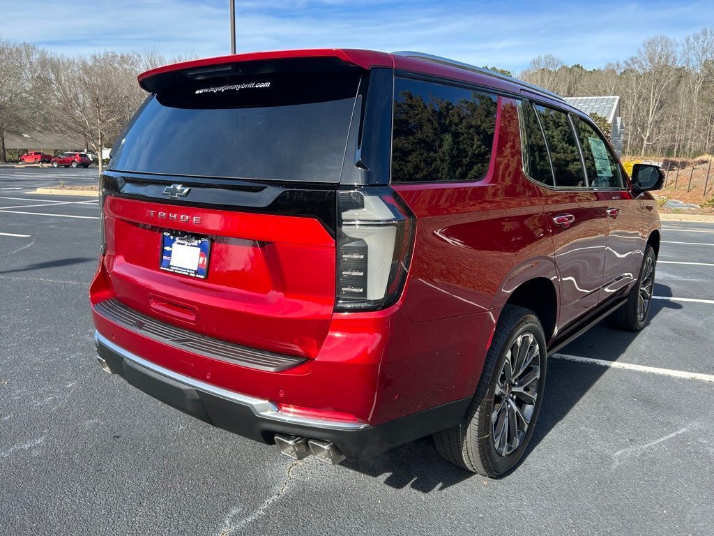 *The Jimmy Britt Premium Delivery Program lets you buy this vehicle right from the comfort of your couch. We frequently deliver vehicles nationwide, and even arrange test drives at home, if you are nearby. We will send you a personal video on any brand new vehicle you are interested in. Call, email, or text us for details.* (Plus, you get our low-price guarantee and two free oil changes and tire rotations!) Factory MSRP: $89,995iPhone/ Android Navigation compatible, Automatic Headlights, Rearview Camera, Bluetooth, Leather, Sunroof / Moonroof, Running Boards, Heated and Vented Front Seats, Heated 2nd Row, Heated Steering Wheel, Remote Starter System, Bose Premium Speaker System, Mutli-function Steering Wheel, Apple Carplay, ONSTAR, 3rd Row Seats, Push Button Start, Remote Keyless Entry, Andoid Auto, Premium Delivery Service Available, Tahoe High Country, 4D Sport Utility, EcoTec3 6.2L V8, 10-Speed Automatic with Overdrive, Radiant Red Tintcoat, Jet Black/Mocha w/Perforated Leather Seat Trim, 15" Diagonal Multi-Color Head-Up Display, 3-Spoke Wrapped Steering Wheel, 3.23 Rear Axle Ratio, 3rd Row 60/40 Power-Folding Split-Bench Seat, Advanced Trailering Package, Air Ride Adaptive Suspension, Apple CarPlay/Android Auto, Automatic temperature control, Blind Zone Steering Assist with Trailering, Bose 10-Speaker Centerpoint Surround Audio System Feature, Bright Front and Rear Door Sill Plates, Chrome Door Handles with Body-Color Strip, Dual Exhaust System, Dual-Pane Power Panoramic Sunroof, Emergency communication system: OnStar and Chevrolet connected services capable, Exterior Parking Camera Rear, Extra Capacity Cooling System, Floor Console, Front anti-roll bar, Front Bucket Seats, Front dual zone A/C, Front LED Fog Lamps, Frontal Driver and Outboard Passenger Airbags, Heated 2nd Row Outboard Seats, Heated Driver and Front Passenger Seats, Heated front seats, Heated rear seats, Heated Steering Wheel, High Country Deluxe, Hitch View with Pan/Zoom Image Adjustment, Inside Rearview Auo-Dimming Rear Camera Mirror, Integrated Trailer Brake Controller, Interior Camera, Key Card, LED Headlamps with LED Daytime Running Lamps, LED Tail Lamps, Low tire pressure warning, Max Trailering Package, Memory Settings, Navigation System, Navigation system: Google built-in compatibility (select service plan required, terms and limitations apply), Outside Heated Power-Adjustable Mirrors, Perforated Leather Seat Trim Price does not include State/County/Local Tax, Tag, GA Lemon Law or Registration fees. Dealer administrative fee of $489 is included in the price. We offer electronic tag and title as an option for additional fee (this fee is based on what your state/county charge to participate as well as a fee to the company we select to process). A fee may be charged to customers wishing to have vehicle delivered. While we make every effort to ensure the data listed here is correct, there may be instances where some of the factory rebates, incentives, options or vehicle features may be listed incorrectly as we get data from multiple data sources. PLEASE MAKE SURE to confirm the details of this vehicle (such as what factory rebates you may or may not qualify for based on your residence/employment/financing) with the dealer to ensure its accuracy. Dealer can not be held liable for data that is listed incorrectly. You may also qualify for $500 - GM Rewards Card Sales Sign Up and Spend Offer. Exp. 06/30/2026 Savings applied to everyone. $1500.00 Retail Trade Incentive for current owners trading in 2011 or newer motor vehicle with less than 150,000 miles. Trade must run and drive with valid registration. Not available with special financing, lease and some other offers. Must take new retail delivery by 02/05/2026. Ask Dealer representative for details on qualification Savings applied to everyone. Offer includes up to $1500 finance assistance. Not available with special financing, lease and select other offers. Must take new retail delivery by 02/05/2026