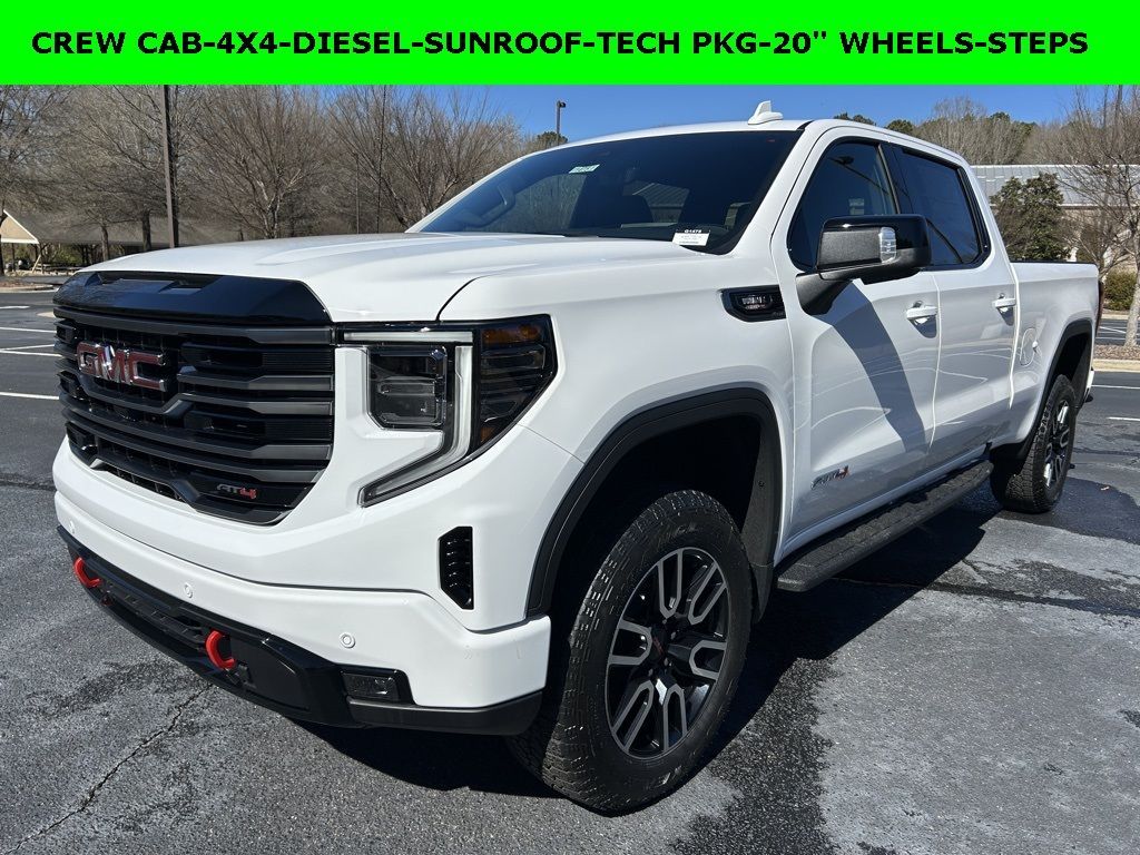 *The Jimmy Britt Premium Delivery Program lets you buy this vehicle right from the comfort of your couch. We frequently deliver vehicles nationwide, and even arrange test drives at home, if you are nearby. We will send you a personal video on any brand new vehicle you are interested in. Call, email, or text us for details.* (Plus, you get our low-price guarantee and two free oil changes and tire rotations!) Factory MSRP: $73,860 Priced below KBB Fair Purchase Price!iPhone/ Android Navigation compatible, Automatic Headlights, Rearview Camera, Bluetooth, Leather, Sunroof / Moonroof, Towing Package / Hitch, Bedliner, Running Boards, Heated and Vented Front Seats, Heated 2nd Row, Heated Steering Wheel, Remote Starter System, LED Cargo Box Lighting, Bose Premium Speaker System, Mutli-function Steering Wheel, 4X4, Apple Carplay, ONSTAR, Push Button Start, Remote Keyless Entry, Andoid Auto, Premium Delivery Service Available, Sierra 1500 AT4, 4D Crew Cab, 3.0L I6, 10-Speed Automatic, 4WD, Summit White, Jet Black With Kalahari Accents Leather, 120-Volt Bed Mounted Power Outlet, 120-Volt Interior Power Outlet, 2 Charge/Data USB Ports Inside Center Console, 2 Type-C Charge-Only Rear USB Ports, 2 USB Ports, 220 Amp Alternator, 3.23 Rear Axle Ratio, Apple CarPlay/Android Auto, AT4 Preferred Package, AT4 Premium Package, Auto-Locking Rear Differential, Automatic temperature control, Bed View Camera, Black Chrome Grille Insert Bars, Deep-Tinted Glass, Electric Rear-Window Defogger, Emergency communication system: OnStar, Floor-Mounted Center Console, Following Distance Indicator, Forward Collision Alert, Front dual zone A/C, Front Pedestrian Braking, Front Rain-Sensing Wipers, HD Surround Vision, Heated 2nd Row Outboard Seats, Heated Driver & Front Outboard Passenger Seating, Heated front seats, Heated rear seats, Heated steering wheel, Heavy-Duty Air Filter, Hill Descent Control, Hitch Guidance, Hitch View, In-Vehicle Trailering System App, Integrated Trailer Brake Controller, Keyless Open & Start, Lane Keep Assist w/Lane Departure Warning, LED Cargo Area Lighting, Low tire pressure warning, Multicolor 15" Diagonal Head-Up Display, Navigation System, OnStar Services Capable, Perforated Front Leather Seat Trim, Perimeter Lighting, Power Door Locks, Power driver seat, Power Front Passenger Windows w/Express Up/Down, Power Front Windows w/Driver Express Up/Down, Power passenger seat, Power Rake & Telescoping Steering Column, Power Rear Windows w/Express Down, Power Sliding Rear Window w/Rear Defogger, Preferred Equipment Group 4SB, Premium Bose 7-Speaker Sound System, Push Button Start, Rain sensing wipers, Re Price does not include State/County/Local Tax, Tag, GA Lemon Law or Registration fees. Dealer administrative fee of $489 is included in the price. We offer electronic tag and title as an option for additional fee (this fee is based on what your state/county charge to participate as well as a fee to the company we select to process). A fee may be charged to customers wishing to have vehicle delivered. While we make every effort to ensure the data listed here is correct, there may be instances where some of the factory rebates, incentives, options or vehicle features may be listed incorrectly as we get data from multiple data sources. PLEASE MAKE SURE to confirm the details of this vehicle (such as what factory rebates you may or may not qualify for based on your residence/employment/financing) with the dealer to ensure its accuracy. Dealer can not be held liable for data that is listed incorrectly. You may also qualify for $1750 - Buick & GMC Consumer Cash Program. Exp. 03/02/2026 $2500 - GM Trade In Allowance Program. Exp. 03/02/2026 $500 - Buick GMC Bonus Cash. Exp. 03/02/2026 $500 - GM Rewards Card Sales Sign Up and Spend Offer. Exp. 06/30/2026 Savings applied to everyone. Offer includes up to $1500 finance assistance. Not available with special financing, lease and select other offers. Must take new retail delivery by 02/05/2026