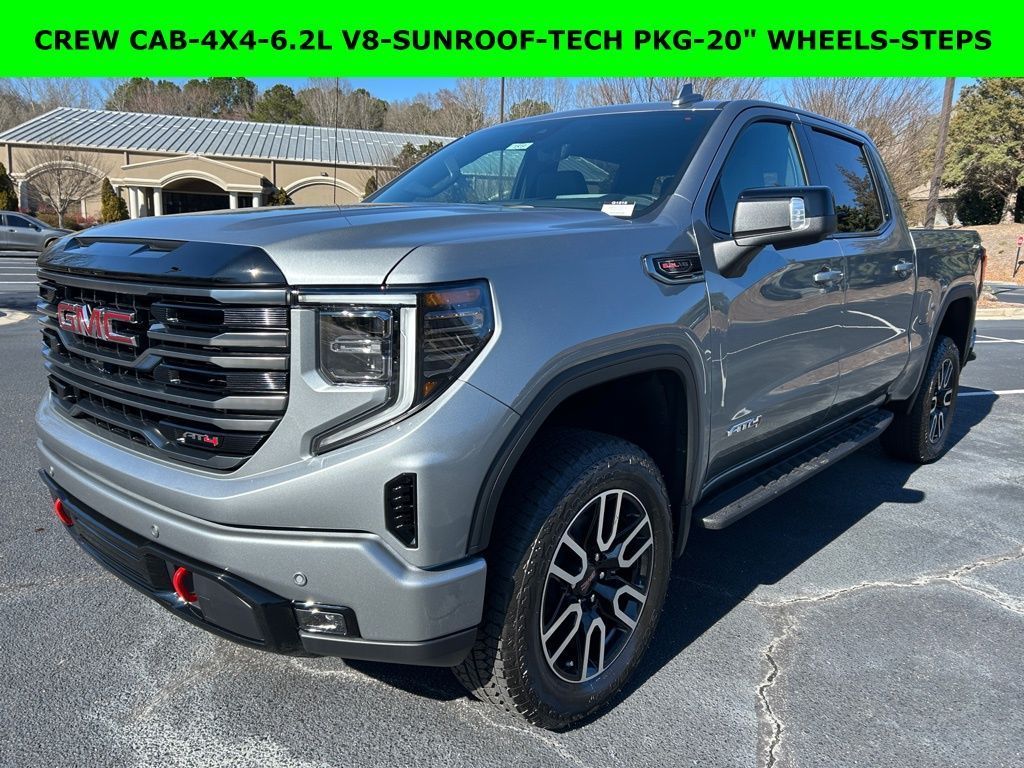 *The Jimmy Britt Premium Delivery Program lets you buy this vehicle right from the comfort of your couch. We frequently deliver vehicles nationwide, and even arrange test drives at home, if you are nearby. We will send you a personal video on any brand new vehicle you are interested in. Call, email, or text us for details.* (Plus, you get our low-price guarantee and two free oil changes and tire rotations!) Factory MSRP: $76,045 Priced below KBB Fair Purchase Price!iPhone/ Android Navigation compatible, Automatic Headlights, Rearview Camera, Bluetooth, Leather, Sunroof / Moonroof, Towing Package / Hitch, Bedliner, Running Boards, Heated and Vented Front Seats, Heated 2nd Row, Heated Steering Wheel, Remote Starter System, LED Cargo Box Lighting, Bose Premium Speaker System, Mutli-function Steering Wheel, 4X4, Apple Carplay, ONSTAR, Push Button Start, Remote Keyless Entry, Andoid Auto, Premium Delivery Service Available, Sierra 1500 AT4, 4D Crew Cab, EcoTec3 6.2L V8, 10-Speed Automatic, 4WD, Sterling Metallic, Jet Black w/Kalahari Accents w/Perforated Front Leather Seat Trim, 120-Volt Interior Power Outlet, 170 Amp Alternator, 2 Charge/Data USB Ports Inside Center Console, 2 Type-C Charge-Only Rear USB Ports, 2 USB Ports, 3.23 Rear Axle Ratio, Apple CarPlay/Android Auto, AT4 Preferred Package, AT4 Premium Package, Auto-Locking Rear Differential, Automatic temperature control, Bed View Camera, Black Chrome Grille Insert Bars, Deep-Tinted Glass, Electric Rear-Window Defogger, Emergency communication system: OnStar, Floor-Mounted Center Console, Following Distance Indicator, Forward Collision Alert, Front dual zone A/C, Front Pedestrian Braking, Front Rain-Sensing Wipers, HD Surround Vision, Heated 2nd Row Outboard Seats, Heated front seats, Heated rear seats, Heated steering wheel, Heavy-Duty Air Filter, Hill Descent Control, Hitch Guidance, Hitch View, Integrated Trailer Brake Controller, LED Cargo Area Lighting, Low tire pressure warning, Multicolor 15" Diagonal Head-Up Display, Navigation System, OnStar Services Capable, Perforated Front Leather Seat Trim, Perimeter Lighting, Power Door Locks, Power driver seat, Power passenger seat, Power Sunroof, Preferred Equipment Group 4SB, Premium Bose 7-Speaker Sound System, Push Button Start, Rain sensing wipers, Rear Camera Mirror, Rear Cross Traffic Braking, Rear Pedestrian Detection, Rear Wheelhouse Liners, Red Recovery Hooks, Remote keyless entry, Remote Vehicle Starter System, Safety Alert Seat, Steering Wheel Audio Controls, Technology Package, Trailer Camera Provisions, Trailer Side Blind Zone Alert, Trailering Package, Universal Home Remote, Vent Price does not include State/County/Local Tax, Tag, GA Lemon Law or Registration fees. Dealer administrative fee of $489 is included in the price. We offer electronic tag and title as an option for additional fee (this fee is based on what your state/county charge to participate as well as a fee to the company we select to process). A fee may be charged to customers wishing to have vehicle delivered. While we make every effort to ensure the data listed here is correct, there may be instances where some of the factory rebates, incentives, options or vehicle features may be listed incorrectly as we get data from multiple data sources. PLEASE MAKE SURE to confirm the details of this vehicle (such as what factory rebates you may or may not qualify for based on your residence/employment/financing) with the dealer to ensure its accuracy. Dealer can not be held liable for data that is listed incorrectly. You may also qualify for $1750 - Buick & GMC Consumer Cash Program. Exp. 03/31/2026 $3500 - GM Trade In Allowance Program. Exp. 03/31/2026 $500 - Buick GMC Bonus Cash. Exp. 03/31/2026 $500 - GM Rewards Card Sales Sign Up and Spend Offer. Exp. 06/30/2026 Savings applied to everyone. Offer includes up to $1500 finance assistance. Not available with special financing, lease and select other offers. Must take new retail delivery by 02/05/2026