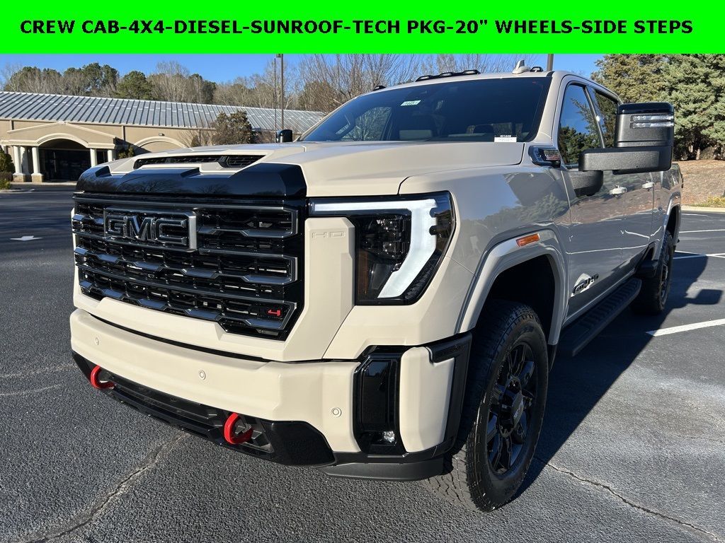 *The Jimmy Britt Premium Delivery Program lets you buy this vehicle right from the comfort of your couch. We frequently deliver vehicles nationwide, and even arrange test drives at home, if you are nearby. We will send you a personal video on any brand new vehicle you are interested in. Call, email, or text us for details.* (Plus, you get our low-price guarantee and two free oil changes and tire rotations!) Factory MSRP: $92,070iPhone/ Android Navigation compatible, Automatic Headlights, Rearview Camera, Bluetooth, Leather, Sunroof / Moonroof, Towing Package / Hitch, Bedliner, Running Boards, Heated and Vented Front Seats, Heated 2nd Row, Heated Steering Wheel, Remote Starter System, LED Cargo Box Lighting, Bose Premium Speaker System, Mutli-function Steering Wheel, 4X4, Apple Carplay, ONSTAR, Push Button Start, Remote Keyless Entry, Andoid Auto, Premium Delivery Service Available, Sierra 2500HD AAT4, 4D Crew Cab, Duramax 6.6L V8 Turbodiesel, 10-Speed Automatic, 4WD, Coastal Dune, Jet Black w/Kalahari Accents w/Perforated Leather-Appointed Front Seat Trim, 120-Volt Bed Mounted Power Outlet, 120-Volt Instrument Panel Power Outlet, 2 Charge-Only Rear USB Ports, 2 Charge/Data USB Ports Inside Center Console, 2 USB Ports, 2-Speed Active Transfer Case, 3.42 Axle Ratio, Apple CarPlay/Android Auto, AT4 Preferred Package, AT4 Premium Plus Package, Automatic temperature control, Bed View Camera with Two Trailer Camera Provisions, Bose Premium 7-Speaker Sound System, Deep-Tinted Glass, Electric Rear-Window Defogger, Emergency communication system: OnStar, Floor-Mounted Center Console, Following Distance Indicator, Forward Collision Alert, Front dual zone A/C, Front Pedestrian Braking, Front Rain-Sensing Wipers, Gloss Black Header Grille and Grille Insert Bars, Gooseneck/5th Wheel Prep Package, HD Surround Vision, Heated 2nd Row Outboard Seats, Heated Driver and Front Outboard Passenger Seats, Heated front seats, Heated rear seats, Heated steering wheel, Inside Rearview Auo-Dimming Rear Camera Mirror, Keyless Open and Start, Lane Departure Warning System, LED Cargo Area Lighting, LED Smoked Amber Roof Marker Lamps, Low tire pressure warning, Manual Tilt-Wheel/Telescoping Steering Column, Max Trailering Package, Multicolor 15" Diagonal Head-Up Display, Navigation System, OnStar Services Capable, Perforated Leather-Appointed Front Seat Trim, Picku Price does not include State/County/Local Tax, Tag, GA Lemon Law or Registration fees. Dealer administrative fee of $489 is included in the price. We offer electronic tag and title as an option for additional fee (this fee is based on what your state/county charge to participate as well as a fee to the company we select to process). A fee may be charged to customers wishing to have vehicle delivered. While we make every effort to ensure the data listed here is correct, there may be instances where some of the factory rebates, incentives, options or vehicle features may be listed incorrectly as we get data from multiple data sources. PLEASE MAKE SURE to confirm the details of this vehicle (such as what factory rebates you may or may not qualify for based on your residence/employment/financing) with the dealer to ensure its accuracy. Dealer can not be held liable for data that is listed incorrectly. You may also qualify for $500 - Buick & GMC Consumer Cash Program. Exp. 03/02/2026 $500 - GM Rewards Card Sales Sign Up and Spend Offer. Exp. 06/30/2026 Savings applied to everyone. $1500.00 Retail Trade Incentive for current owners trading in 2011 or newer motor vehicle with less than 150,000 miles. Trade must run and drive with valid registration. Not available with special financing, lease and some other offers. Must take new retail delivery by 02/05/2026. Ask Dealer representative for details on qualification Savings applied to everyone. Offer includes up to $1500 finance assistance. Not available with special financing, lease and select other offers. Must take new retail delivery by 02/05/2026