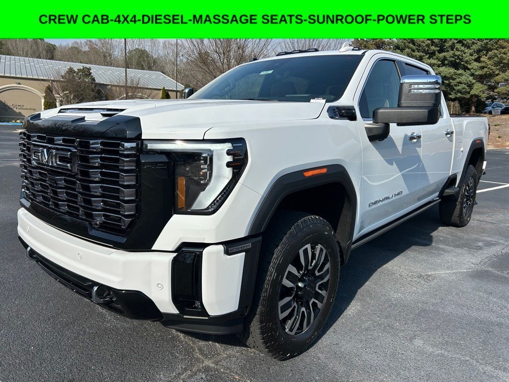 *The Jimmy Britt Premium Delivery Program lets you buy this vehicle right from the comfort of your couch. We frequently deliver vehicles nationwide, and even arrange test drives at home, if you are nearby. We will send you a personal video on any brand new vehicle you are interested in. Call, email, or text us for details.* (Plus, you get our low-price guarantee and two free oil changes and tire rotations!) Factory MSRP: $103,735iPhone/ Android Navigation compatible, Automatic Headlights, Rearview Camera, Bluetooth, Leather, Sunroof / Moonroof, Towing Package / Hitch, Bedliner, Running Boards, Heated and Vented Front Seats, Heated 2nd Row, Heated Steering Wheel, Remote Starter System, LED Cargo Box Lighting, Bose Premium Speaker System, Mutli-function Steering Wheel, 4X4, Apple Carplay, ONSTAR, Push Button Start, Remote Keyless Entry, Andoid Auto, Premium Delivery Service Available, Sierra 2500HD Denali Ultimate, 4D Crew Cab, Duramax 6.6L V8 Turbodiesel, 10-Speed Automatic, 4WD, Summit White, Alpine Umber w/Full Grain Leather Seat Trim, 120-Volt Bed Mounted Power Outlet, 120-Volt Instrument Panel Power Outlet, 2 Charge-Only Rear USB Ports, 2 Charge/Data USB Ports Inside Center Console, 2 USB Ports, 2-Speed Active Transfer Case, 3.42 Axle Ratio, Apple CarPlay/Android Auto, Automatic temperature control, Bed View Camera with Two Trailer Camera Provisions, Bose Premium Series 12-Speaker System, Deep-Tinted Glass, Electric Rear-Window Defogger, Emergency communication system: OnStar, Floor-Mounted Center Console, Following Distance Indicator, Forward Collision Alert, Front dual zone A/C, Front Pedestrian Braking, Front Rain-Sensing Wipers, Full Grain Leather Seat Trim, Gooseneck/5th Wheel Prep Package, HD Surround Vision, Heads-Up Display, Heated 2nd Row Outboard Seats, Heated Driver and Front Outboard Passenger Seats, Heated front seats, Heated rear seats, Heated steering wheel, Hitch Guidance with Hitch View, in-Vehicle Trailering System App, Inside Rearview Auo-Dimming Rear Camera Mirror, Keyless Open and Start, Lane Departure Warning System, LED Cargo Area Lighting, LED Smoked Amber Roof Marker Lamps, Low tire pressure warning, Manual Tilt-Wheel/Telescoping Steering Column, Max Trailering Package, Multicolor 15" Diagonal Head-Up Display, Navigation System, OnStar Services Capable, Overhead Price does not include State/County/Local Tax, Tag, GA Lemon Law or Registration fees. Dealer administrative fee of $489 is included in the price. We offer electronic tag and title as an option for additional fee (this fee is based on what your state/county charge to participate as well as a fee to the company we select to process). A fee may be charged to customers wishing to have vehicle delivered. While we make every effort to ensure the data listed here is correct, there may be instances where some of the factory rebates, incentives, options or vehicle features may be listed incorrectly as we get data from multiple data sources. PLEASE MAKE SURE to confirm the details of this vehicle (such as what factory rebates you may or may not qualify for based on your residence/employment/financing) with the dealer to ensure its accuracy. Dealer can not be held liable for data that is listed incorrectly. You may also qualify for $500 - Buick & GMC Consumer Cash Program. Exp. 03/31/2026 $500 - Buick GMC Bonus Cash. Exp. 03/31/2026 $500 - GM Rewards Card Sales Sign Up and Spend Offer. Exp. 06/30/2026 Savings applied to everyone. $1500.00 Retail Trade Incentive for current owners trading in 2011 or newer motor vehicle with less than 150,000 miles. Trade must run and drive with valid registration. Not available with special financing, lease and some other offers. Must take new retail delivery by 02/05/2026. Ask Dealer representative for details on qualification Savings applied to everyone. Offer includes up to $1500 finance assistance. Not available with special financing, lease and select other offers. Must take new retail delivery by 02/05/2026