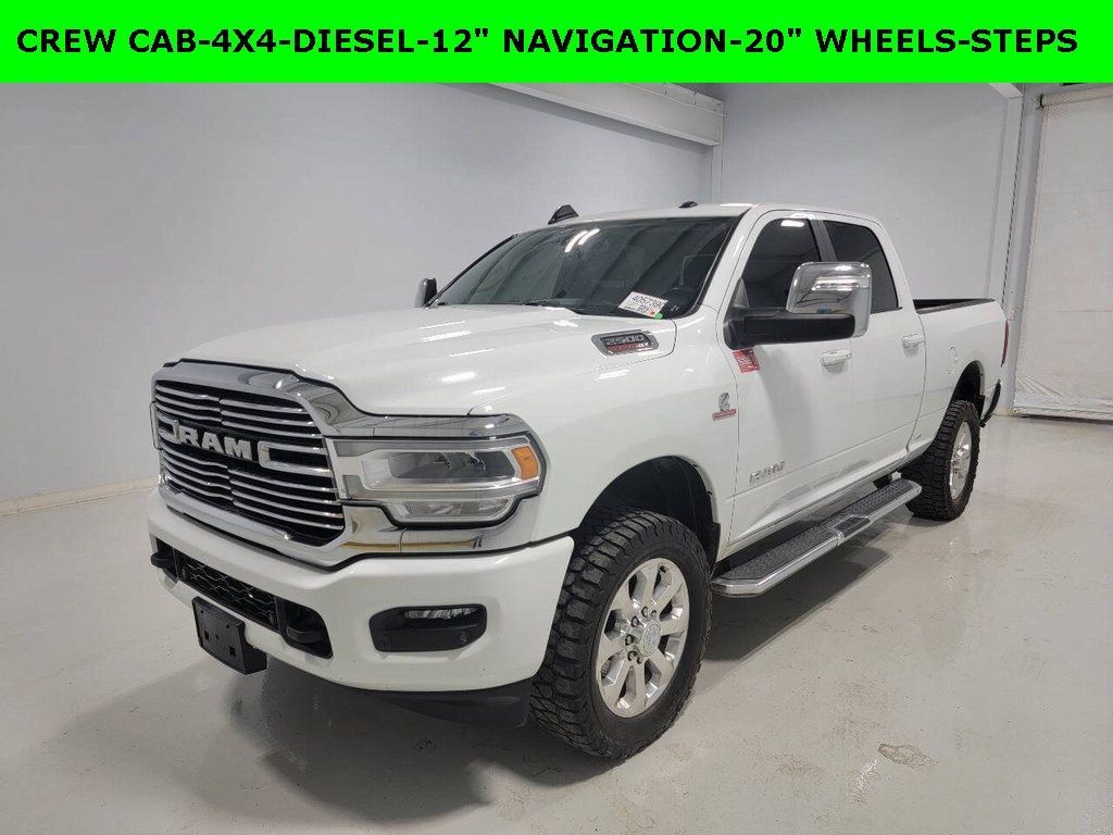 *Certified inspections have been completed and this vehicle meets all requirements for certification and is available upon request. Chrysler Certified brings with it the peace of mind protection of a 3 month/3,000 mile comprehensive warranty, and a 7year/100000mile powertrain warranty. (Plus, you get our low-price guarantee and 2 free oil changes!) *The Jimmy Britt Premium Delivery Program lets you buy this vehicle right from the comfort of your couch. We frequently ship vehicles, and even arrange test drives at home, if you are nearby. We will send you a personal video on any vehicle you are interested in. Call, email, or text us for details. Recent Arrival! Certified. Priced below KBB Fair Purchase Price! Odometer is 4488 miles below market average!One Owner, Clean Autocheck / No Accidents, Factory Certified Preowned, Remaining Factory Warranty, Extended Warranty Available, Bluetooth / Hands-free, Apple Car Play / Android Auto Compatible, Back-Up Camera w/ Guidelines, Heated Seats, Keyless Entry, Leather Seats, Multi-Zone Climate Control, Navigation, Portable Audio Connection, Premium Audio, Premium Wheels, Multi-function Steering Wheel, Trailer Hitch, 4x4/4WD, Remote Start, Spray-in Bedliner, Apple Carplay, Android Auto, Cooled Seats, *Premium Delivery Service Available*, iphone / Droid Navigation Compatible, 2500 Laramie, 4D Crew Cab, Cummins 6.7L I6 Turbodiesel, 4WD, Bright White Clearcoat, Black w/Leather Trim 40/20/40 Bench Seat or Leather Trimmed Bucket Seats, 12" Touchscreen Display, 20" x 8.0" Polished Aluminum Wheels, 220 Amp Alternator, 2nd Row In Floor Storage Bins, 4G LTE Wi-Fi Hot Spot, Alexa Built-In, Apple CarPlay, Auto Adjust In Reverse Exterior Mirrors, Auto Dim Exterior Mirror, Auto High Beam Headlamp Control, Auto Power-Folding Mirrors, Auto-Dimming Exterior Passenger Mirror, Bed Utility Group, Blind Spot & Cross Path Detection, Chrome Exterior Mirrors, Cold Weather Group, Connected Travel & Traffic Services, Connectivity - US/Canada, Diesel Exhaust Brake, Disassociated Touchscreen Display, Engine Block Heater, Exterior Mirrors Courtesy Lamps, Exterior Mirrors w/Heating Element, Exterior Mirrors w/Memory, Exterior Mirrors w/Supplemental Signals, Foam Bottle Insert (Door Trim Panel), For Details, Visit DriveUconnect.com, For More Info, Call 800-643-2112, Forward & Reverse Utility Lights, Front LED Fog Lamps, Front Performance Tuned Shock Absorbers, Global Telematics Box Module (TBM), Google Android Auto, GPS Antenna Input, GPS Navigation, HD Radio, Heavy Duty Snow Plow Prep Group, Hill Descent Control, Integrated Voice Command w/Bluetooth, Laramie Level 1 Equipment Group, LED Bed Lighting, LED Reflector Headlamps, Mirror Running Lights, MOPAR Deployable Bed Step, MOPAR Spray In Bedliner, MOPAR Winter Front Grille Cover, Navigation System, Off Road Package, Off-Road Information Pages, ParkSense Front/Rear Park Assist System, Power Adjust Mirrors, Power Adjustable Convex Aux Mirrors, Power Adjustable Pedals w/Memory, Power Heated Fold Telescopic Mirrors w/Memory, Power Telescoping Mirrors, Quick Order Package 2HH Laramie, Radio: Uconnect 5 Nav w/12.0" Display, Radio/Driver Seat/Mirrors/Pedals Memory, Rain Sensitive Windshield Wipers, Rear Performance Tuned Shock Absorbers, Rear Power Sliding Window, Rear Window Defroster, Remote Tailgate Release, Selectable Tire Fill Alert, SiriusXM Radio Service, SiriusXM w/360L, Tow Hooks, Trailer Tow Pages.FCA US LLC Certified Pre-Owned Details: * Transferable Warranty * Limited Warranty: 3 Month/3,000 Mile (whichever comes first) after new car warranty expires or from certified purchase date * Vehicles Up to 75,000 Miles and/or 5 Model Years. 24-Hour Towing & Roadside Assistance, Car Rental Allowance, CARFAX® Vehicle History ReportTM and an Introductory 3-month Subscription to SiriusXM® Satellite Radio & Certified Warranty Upgrades * Powertrain Limited Warranty: 84 Month/100,000 Mile (whichever comes first) from original in-service date * Roadside Assista