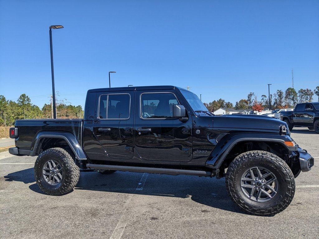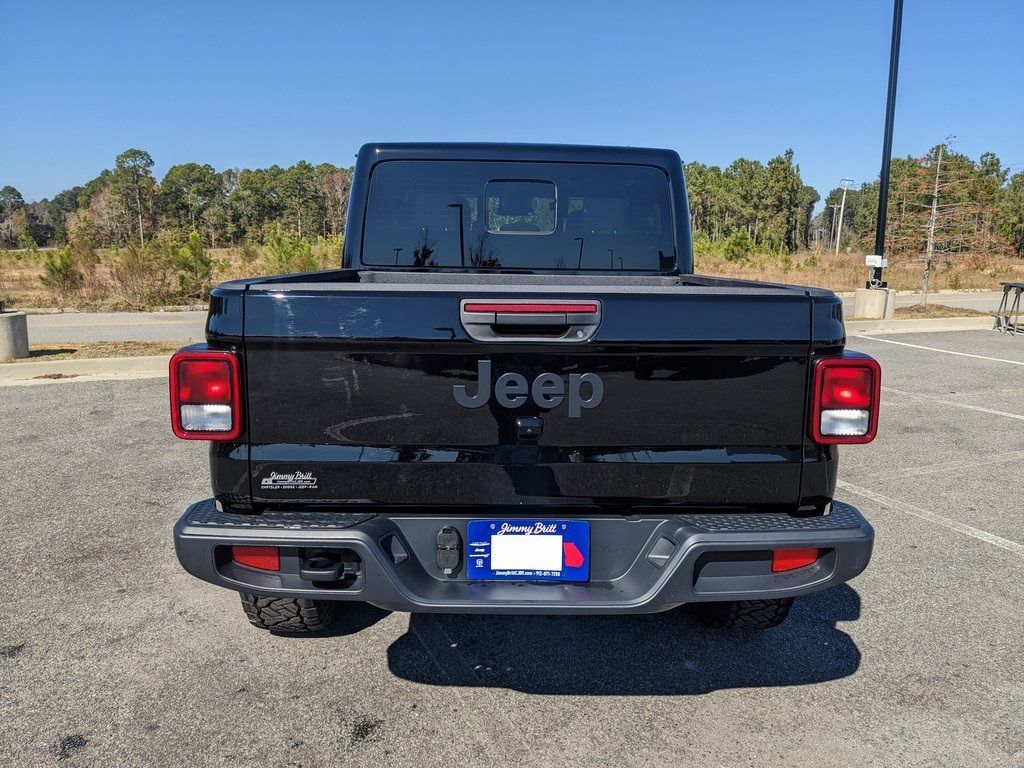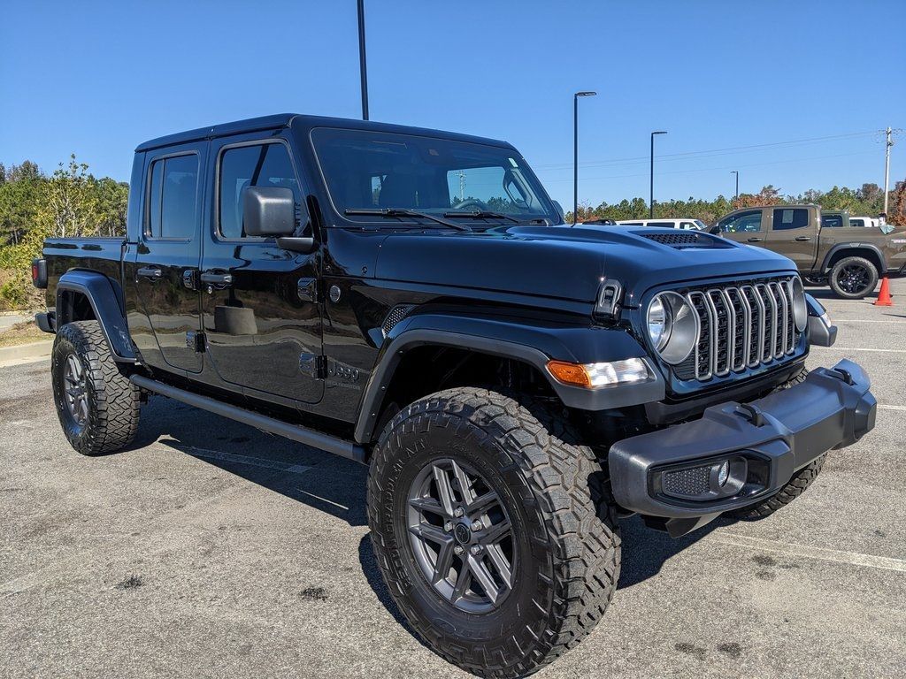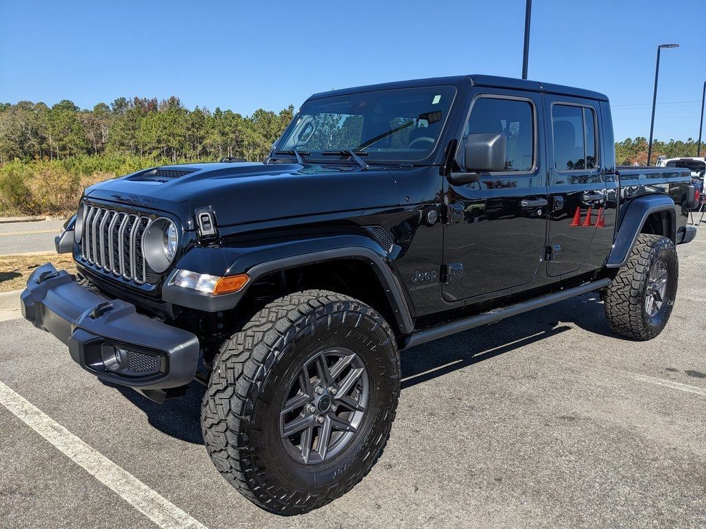 Price includes rebates. Not all customers may qualify for all rebates. $1500 - 2025 National Stellantis Loyalty Retail Bonus Cash . Exp. 01/05/2026 $2250 - 2025 National Bonus Cash . Exp. 01/05/2026 Savings applied to everyone. Includes $1000 finance assistance. Not available with special financing, lease and select other offers. Must take new retail delivery by 01/05/2026. Savings applied to everyone. $1000.00 Retail Trade Incentive for current owners trading in 2011 or newer motor vehicle with less than 150,000 miles. Trade must run and drive with valid registration. Not available with special financing, lease and some other offers. Must take new retail delivery by 01/05/2026. Ask Dealer representative for details on qualification. *The Jimmy Britt Premium Delivery Program lets you buy this vehicle right from the comfort of your couch. We frequently deliver vehicles nationwide, and even arrange test drives at home, if you are nearby. We will send you a personal video on any vehicle you are interested in. Call, email, or text us for details.* (Plus, you get our low-price guarantee and two free oil changes!) Factory MSRP: $50,727 Dark Sky Bluetooth / Hands-free, Apple Car Play / Android Auto Compatible, Back-Up Camera w/ Guidelines, Cruise Control, Portable Audio Connection, Power Locks, Power Windows, Premium Wheels, Security System, Multi-function Steering Wheel, Sunroof / Moonroof, 4x4/4WD, Spray-in Bedliner, Apple Carplay, Android Auto, Lifted, Oversized Tires, *Premium Delivery Service Available*, iphone / Droid Navigation Compatible, POWER STEPS, 35" NITTO RECON GRAPPLER TIRES, Gladiator Sport Dark Sky, 4D Crew Cab, 3.6L V6 24V VVT, 8-Speed Automatic, 4WD, Black Clearcoat, Black w/Cloth Low-Back Bucket Seats or Premium McKinley Trimmed Seats, 110 MPH Vehicle Max Speed Calibration, 12.3" Touchscreen Display, 3.73 Rear Axle Ratio, 4G LTE Wi-Fi Hot Spot, ABS brakes, Advanced Brake Assist, Alexa Built-In, AM/FM radio: SiriusXM, Apple CarPlay, Apple CarPlay/Android Auto, Automatic Headlamps, Body Color 3-Piece Hard Top, Body Color Fender Flares (2-Piece), Cloth Low-Back Bucket Seats, Compass, Dark Sky Appearance Package, Daytime Running Lamp System, Deep Tint Sunscreen Windows, Electronic Stability Control, Enhanced Adaptive Cruise Control, Freedom Panel Storage Bag, Full Speed Forward Collision Warning Plus, Google Android Auto, Illuminated entry, Integrated roll-over protection, Low tire pressure warning, Mold In Color Bumper w/Gloss Black, MOPAR Spray In Bedliner, No Soft Top, Normal Duty Plus Suspension, Overhead airbag, ParkView Rear Back-Up Camera, Performance Hood, Power Heated Mirrors, Premium Wrapped Steering Wheel, Quick Order Package 24S Sport S, Radio: Uconnect 5 w/12.3" Display, Rear anti-roll bar, Rear Sliding Window, Rear Window Defroster, Remote keyless entry, Security Alarm, Sun Visors w/Illuminated Vanity Mirrors, Traction control, Wheels: 17" x 7.5" Gray. Black Clearcoat 2025 Jeep Gladiator Sport 3.6L V6 24V VVT 4WDThe Jimmy Britt Automotive Family has received multiple Dealer of the Year awards in the state of Georgia. We've also been awarded the Customer Satisfaction Award through DealerRater! Price does not include State/County/Local Tax, Tag, GA Lemon Law or Registration fees. Dealer administrative fee is included in the price. We offer electronic tag and title as an option for an additional fee (this fee is based on what your state/county charge to participate as well as a fee to the company we select to process). A fee may be charged to customers wishing to have the vehicle delivered. New Vehicles - Must finance with Chrysler Digital to receive all rebates and incentives. Not all will qualify for Chrysler financing. See Dealer for details. Preowned Vehicles - All preowned inventory is “As Is” unless Chrysler Certified or otherwise stated in writing. While we make every effort to ensure the data listed here is correct, there may be instances where some of the factory rebates, incentives, option