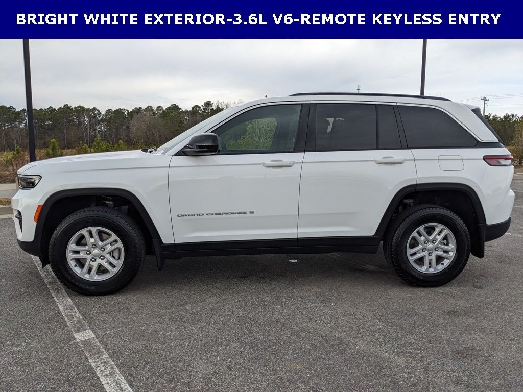 Price includes rebates. Not all customers may qualify for all rebates. $1500 - 2025 National Stellantis Loyalty Retail Bonus Cash . Exp. 02/02/2026 $2250 - 2025 National Retail Bonus Cash . Exp. 02/02/2026 $500 - 2025 Southeast BC Retail Bonus Cash . Exp. 02/02/2026 Savings applied to everyone. Includes $1000 finance assistance. Not available with special financing, lease and select other offers. Must take new retail delivery by 02/04/2026. Savings applied to everyone. $1000.00 Retail Trade Incentive for current owners trading in 2011 or newer motor vehicle with less than 150,000 miles. Trade must run and drive with valid registration. Not available with special financing, lease and some other offers. Must take new retail delivery by 02/04/2026. Ask Dealer representative for details on qualification. *The Jimmy Britt Premium Delivery Program lets you buy this vehicle right from the comfort of your couch. We frequently deliver vehicles nationwide, and even arrange test drives at home, if you are nearby. We will send you a personal video on any vehicle you are interested in. Call, email, or text us for details.* (Plus, you get our low-price guarantee and two free oil changes!) Factory MSRP: $40,055 Priced below KBB Fair Purchase Price! Bluetooth / Hands-free, Apple Car Play / Android Auto Compatible, Back-Up Camera w/ Guidelines, Cruise Control, Portable Audio Connection, Power Locks, Power Windows, Premium Wheels, Security System, Multi-function Steering Wheel, Apple Carplay, Android Auto, *Premium Delivery Service Available*, iphone / Droid Navigation Compatible, Grand Cherokee Laredo, 4D Sport Utility, 3.6L V6 24V VVT, Bright White Clearcoat, Global Black w/Cloth Seats or Capri Leatherette/Suede Seats, Automatic temperature control, Cloth Seats, Emergency communication system, Front Bucket Seats, Front dual zone A/C, Low tire pressure warning, ParkView Rear Back-Up Camera, Power driver seat, Quick Order Package 23A Laredo, Radio: Uconnect 5 with 8.4" Display, Rear anti-roll bar, Rear window wiper, Remote keyless entry, Wheels: 17" x 6.5" Fully Painted Aluminum. Bright White Clearcoat 2025 Jeep Grand Cherokee Laredo 3.6L V6 24V VVT RWD 19/26 City/Highway MPGThe Jimmy Britt Automotive Family has received multiple Dealer of the Year awards in the state of Georgia. We've also been awarded the Customer Satisfaction Award through DealerRater! Price does not include State/County/Local Tax, Tag, GA Lemon Law or Registration fees. Dealer administrative fee is included in the price. We offer electronic tag and title as an option for an additional fee (this fee is based on what your state/county charge to participate as well as a fee to the company we select to process). A fee may be charged to customers wishing to have the vehicle delivered. New Vehicles - Must finance with Chrysler Digital to receive all rebates and incentives. Not all will qualify for Chrysler financing. See Dealer for details. Preowned Vehicles - All preowned inventory is “As Is” unless Chrysler Certified or otherwise stated in writing. While we make every effort to ensure the data listed here is correct, there may be instances where some of the factory rebates, incentives, options, or vehicle features may be listed incorrectly as we get data from multiple data sources.