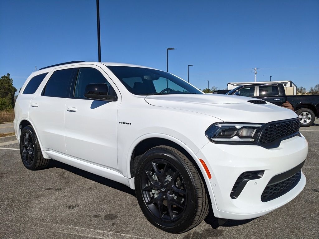 Savings applied to everyone. Includes $1000 finance assistance. Not available with special financing, lease and select other offers. Must take new retail delivery by 01/05/2026. Savings applied to everyone. $1000.00 Retail Trade Incentive for current owners trading in 2011 or newer motor vehicle with less than 150,000 miles. Trade must run and drive with valid registration. Not available with special financing, lease and some other offers. Must take new retail delivery by 01/05/2026. Ask Dealer representative for details on qualification. *The Jimmy Britt Premium Delivery Program lets you buy this vehicle right from the comfort of your couch. We frequently deliver vehicles nationwide, and even arrange test drives at home, if you are nearby. We will send you a personal video on any vehicle you are interested in. Call, email, or text us for details.* (Plus, you get our low-price guarantee and two free oil changes!)Bluetooth / Hands-free, Apple Car Play / Android Auto Compatible, 3rd Row Seats, Back-Up Camera w/ Guidelines, Cruise Control, Heated Seats, Keyless Entry, Multi-Zone Climate Control, Navigation, Portable Audio Connection, Power Locks, Power Windows, Premium Wheels, Security System, Multi-function Steering Wheel, 4x4/4WD, Remote Start, Apple Carplay, Android Auto, *Premium Delivery Service Available*, iphone / Droid Navigation Compatible, Durango GT HEMI V8, 4D Sport Utility, HEMI 5.7L V8 Multi Displacement VVT, AWD, White Knuckle Clearcoat, Black w/Cloth Bucket Seats w/Shift Insert, 3.09 Rear Axle Ratio, AM/FM radio: SiriusXM w/360L, Apple CarPlay/Android Auto, Automatic temperature control, Black Roof Rails, Blacktop Package, Cloth Bucket Seats w/Shift Insert, Emergency communication system: Dodge Connect, Front dual zone A/C, Gloss Black Badges, Gloss Black Exterior Mirrors, Heated front seats, Heated steering wheel, Integrated Roof Rail Crossbars, Low tire pressure warning, Navigation System, ParkView Rear Back-Up Camera, Power driver seat, Power Liftgate, Quick Order Package 22S GT, Radio: Uconnect 5 Nav w/10.1" Display, Rain sensing wipers, Rear air conditioning, Rear anti-roll bar, Rear window wiper, Remote keyless entry, Satin Black Dodge Tail Lamp Badge, Wheels: 20" x 8" Black Noise Split 5-Spoke.White Knuckle Clearcoat 2026 Dodge Durango GT HEMI V8 HEMI 5.7L V8 Multi Displacement VVT AWDThe Jimmy Britt Automotive Family has received multiple Dealer of the Year awards in the state of Georgia. We've also been awarded the Customer Satisfaction Award through DealerRater! Price does not include State/County/Local Tax, Tag, GA Lemon Law or Registration fees. Dealer administrative fee is included in the price. We offer electronic tag and title as an option for an additional fee (this fee is based on what your state/county charge to participate as well as a fee to the company we select to process). A fee may be charged to customers wishing to have the vehicle delivered. New Vehicles - Must finance with Chrysler Digital to receive all rebates and incentives. Not all will qualify for Chrysler financing. See Dealer for details. Preowned Vehicles - All preowned inventory is “As Is” unless Chrysler Certified or otherwise stated in writing. While we make every effort to ensure the data listed here is correct, there may be instances where some of the factory rebates, incentives, options, or vehicle features may be listed incorrectly as we get data from multiple data sources.