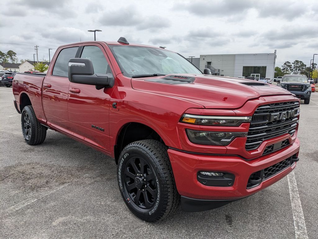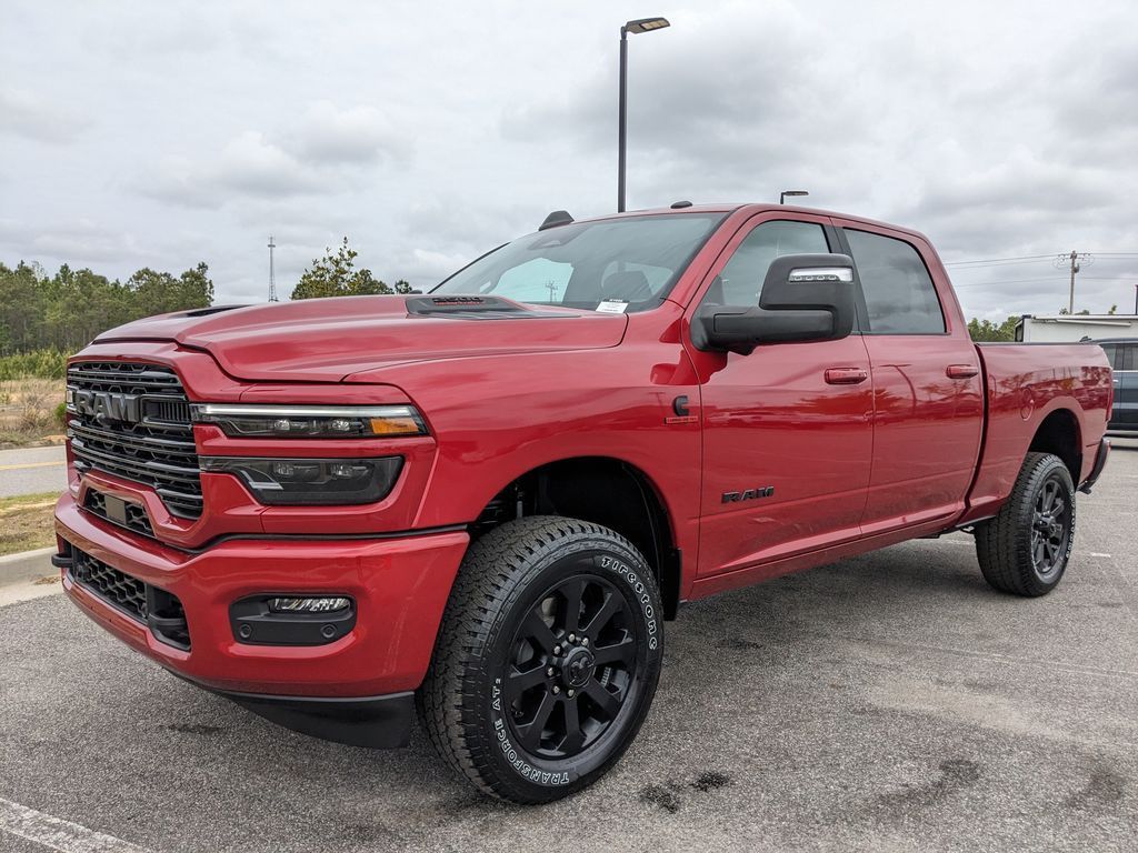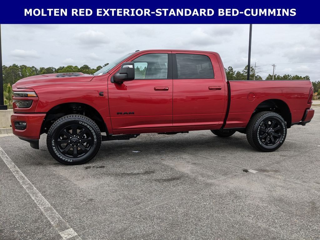 Price includes rebates. Not all customers may qualify for all rebates. $1000 - 2026 National Bonus Cash . Exp. 04/30/2026 Savings applied to everyone. Includes $1000 finance assistance. Not available with special financing, lease and select other offers. Must take new retail delivery by 04/30/2026. Savings applied to everyone. $1000.00 Retail Trade Incentive for current owners trading in 2011 or newer motor vehicle with less than 150,000 miles. Trade must run and drive with valid registration. Not available with special financing, lease and some other offers. Must take new retail delivery by 04/30/2026. Ask Dealer representative for details on qualification. *The Jimmy Britt Premium Delivery Program lets you buy this vehicle right from the comfort of your couch. We frequently deliver vehicles nationwide, and even arrange test drives at home, if you are nearby. We will send you a personal video on any vehicle you are interested in. Call, email, or text us for details.* (Plus, you get our low-price guarantee and two free oil changes!) Factory MSRP: $88,690 Bluetooth / Hands-free, Apple Car Play / Android Auto Compatible, Surround-View Camera w/ Guidelines, Cruise Control, Heated Seats, Leather Seats, Multi-Zone Climate Control, Navigation, Portable Audio Connection, Power Locks, Power Windows, Premium Audio, Premium Wheels, Security System, Multi-function Steering Wheel, 4x4/4WD, Remote Start, Level I Equipment Group, Apple Carplay, Android Auto, Cooled Seats, *Premium Delivery Service Available*, iphone / Droid Navigation Compatible, 2500 Laramie, 4D Crew Cab, 6.7L I6, 4WD, Molten Red Pearlcoat, Black w/Leather Trimmed Bucket Seats Or Leather Trim 40/20/40 Bench Seat, #1 Seat Foam Cushion, 115V Auxiliary Rear Power Outlet, 2 Way Rear Headrest Seat, 2nd Row in Floor Storage Bins, 3.42 Axle Ratio, 4 Way Front Headrests, 4G LTE Wi-Fi Hot Spot, 5th Wheel/Gooseneck Towing Prep Group, Active Lane Management System, Adaptive Steering System, Alexa Built-in, AM/FM radio: SiriusXM with 360L, Anti-Spin Differential Rear Axle, Apple CarPlay, Apple CarPlay/Android Auto, Auto Adjust in Reverse Exterior Mirrors, Auto Dim Exterior Mirror, Auto High Beam Headlamp Control, Auto Power-Folding Mirrors, Auto-Dimming Exterior Passenger Mirror, Automatic temperature control, Black Exterior Mirrors, Black Exterior Truck Badging, Body Color Grille-Surround, Bucket Seats, Center Stop Lamp with Cargo View Camera, Chrome Exterior Mirrors, Connected Travel and Traffic Services, Connectivity - US/Canada, Disassociated Touchscreen Display, Drowsy Driver Detection, Dual Wireless Charging Pad, Exterior Mirrors Courtesy Lamps, Exterior Mirrors with Heating Element, Exterior Mirrors with Memory, Exterior Mirrors with Supplemental Signals, Foam Bottle Insert (door Trim Panel), Folding Flat Load Floor Storage, For More Info, Call 800-643-2112, Forward and Reverse Utility Lights, Front dual zone A/C, Front Seat Back Map Pockets, Full Length Upgraded Floor Console, Global Telematics Box Module, Gloss Black Grille Billets/Accents, Google Android Auto, GPS Antenna Input, GPS Navigation, Heated Front Seats, Heated Steering Wheel, High Back Seats, Integrated Voice Command with Bluetooth, Laramie Level 1 Plus Equipment Group, Leather Trimmed Bucket Seats, LED Bed Lighting, Low tire pressure warning, Mirror Running Lights, MOPAR Deployable Bed Step, MOPAR Spray in Bedliner, Navigation System, Night Edition, Off-Road Info Pages, ParkView Rear Back-Up Camera, Power 2-Way Driver Lumbar Adjust, Power 2-Way Passenger Lumbar Adjust, Power Adjust 8-Way Driver Seat, Power Adjust 8-Way Front Passenger Seat, Power Adjust Mirrors, Power Adjustable Pedals with Memory, Power driver seat, Power Heated Fold Telescopic Mirrors with Memory, Power passenger seat, Power Telescoping Mirrors, Power-Adjustable Convex Aux Mirrors, Quick Order Package 24H Laramie, Radio: Uconnect 5 Navigation with 12.0" Display, Radio/Driver Seat/Mirrors/Pedals Memory, Rain Sensitive Windshield Wipers, Rear 6
